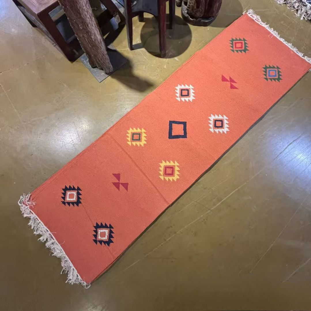 冥想毯瑜伽毯印度多用彩色棉编织地毯瑜伽垫桌旗搭毯200*60cm