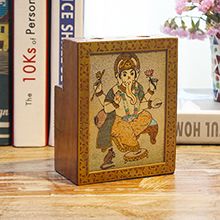 手工彩绘儿童卡通象鼻笔筒学生艺术礼物创意时尚立式木质书桌摆件9.8*6.3cm