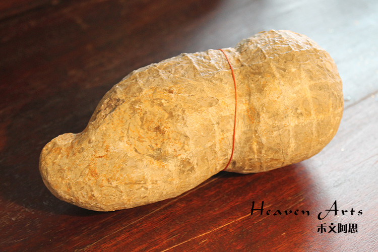 长16cm的摆件上自然形成的纹路与花生表面的痕迹一般无二,俨然是一粒超大号的花生。经历岁月的雕琢,大地色泽的花生摆件上洋溢着醇厚的自然之风。玲珑精致、妙趣横生的花生寄托着人们对生活的美好祝愿,体现出传统生活中的雅趣,也预示着果实累累,事业成功。和其它吉祥物配在一起那意义可就吉祥多多了。
