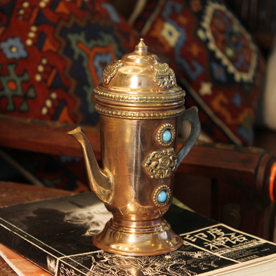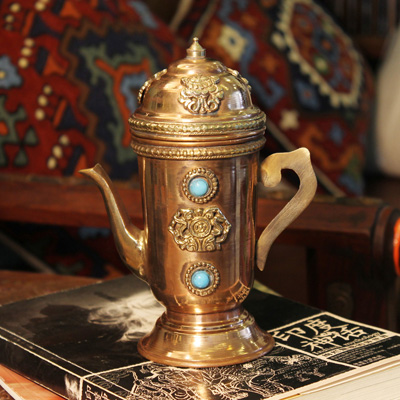 嵌宝石铜工艺壶