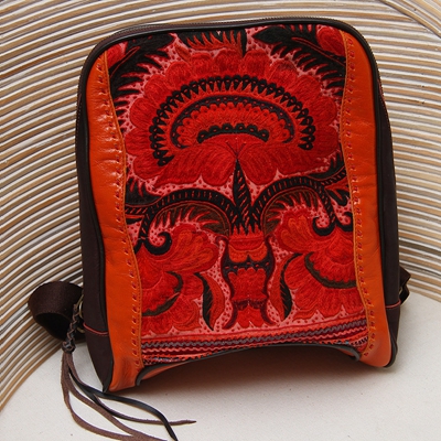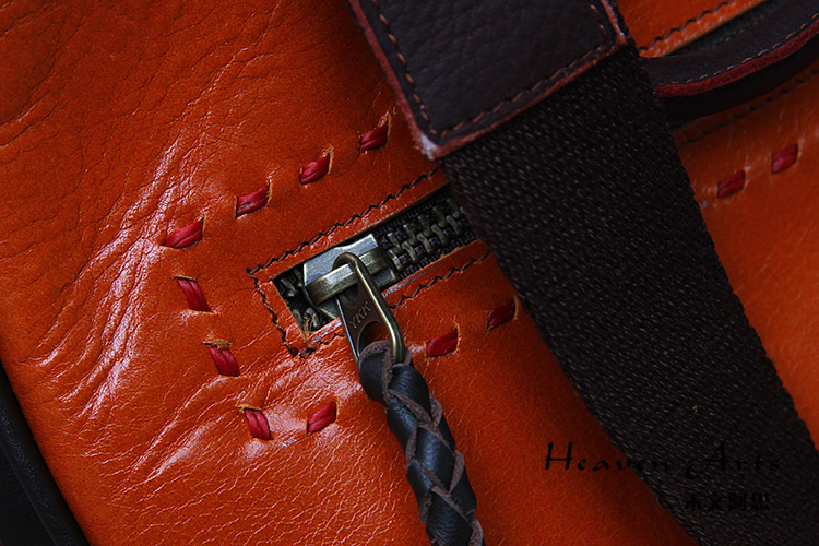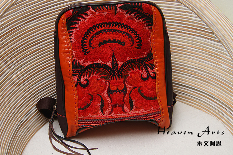手工绣花真皮背包35*28.5cm
