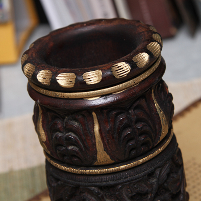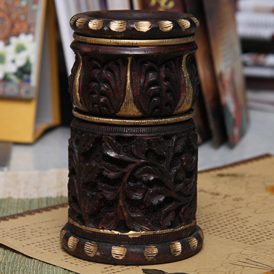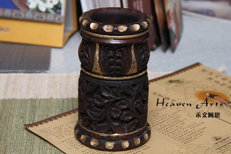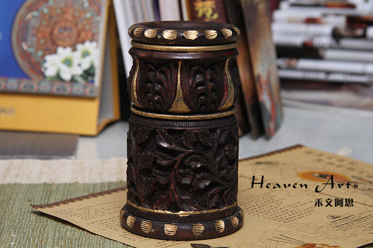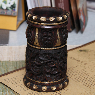 黄杨木精雕笔筒8.5*8.5*13.2cm