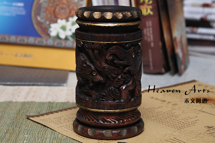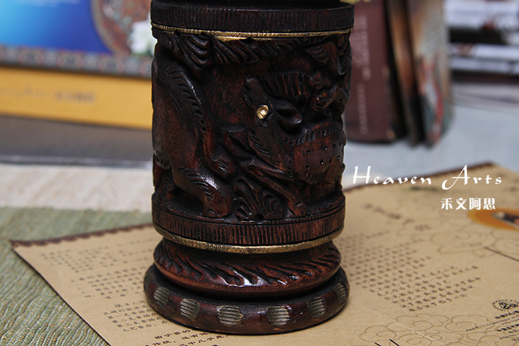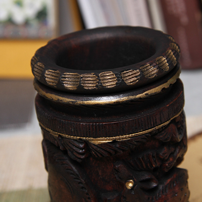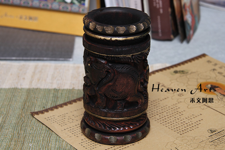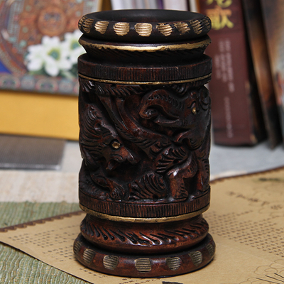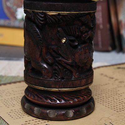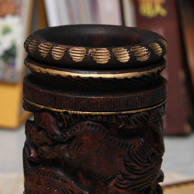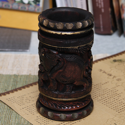 黄杨木精雕笔筒