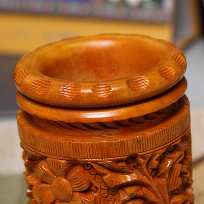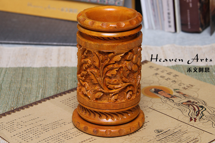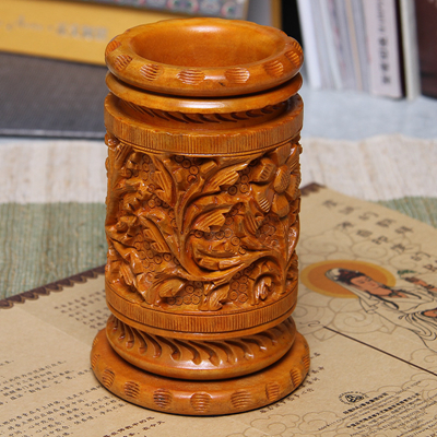 手工彩绘儿童卡通象鼻笔筒学生艺术礼物创意时尚立式木质书桌摆件