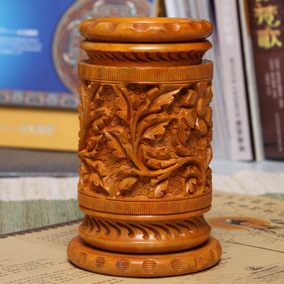 镶铜片创意天然红木笔筒方形镂空木质收纳盒紫檀复古手工实木雕刻