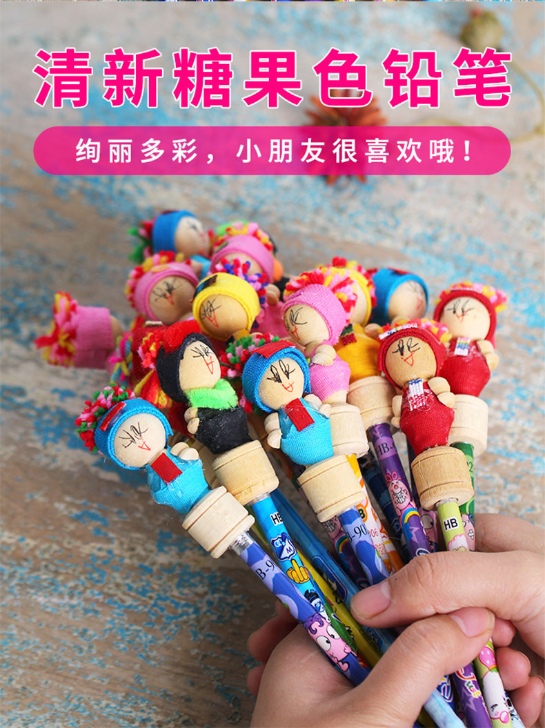 布艺娃娃卡通铅笔(5支/包)24.5*0.7cm