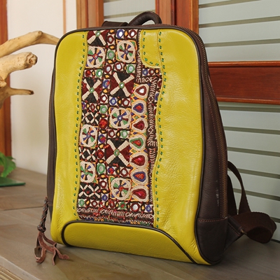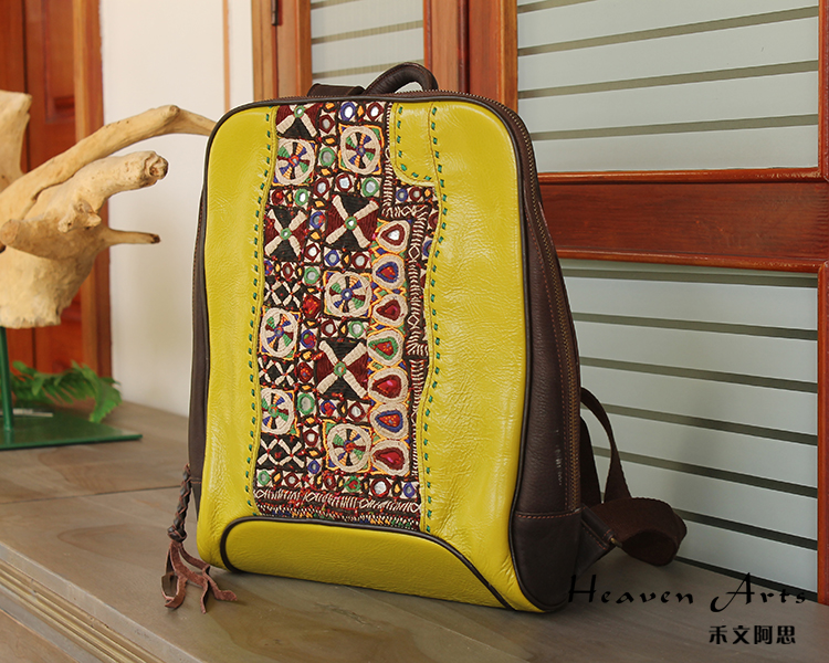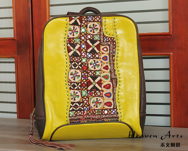 手工绣花真皮背包35*28.5cm