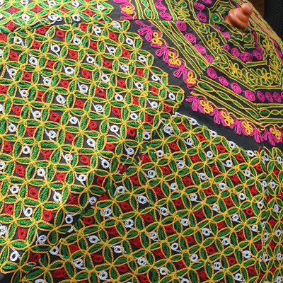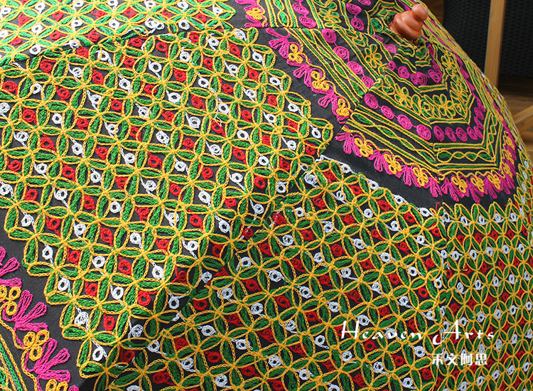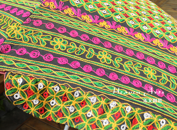 在古老的印度,人们将植物的果实和彩色的石头镶嵌在衣服上,认为这可以得到神灵的庇佑,可以抵挡住邪恶的侵袭。随着岁月的流逝,人们将这样的装饰传承下来,慢慢的发展为精致的绣花钉珠的装饰。现在,绣花钉珠的装饰已经成为印度风情不可或缺的一部分,印度人将这项奇妙的艺术发挥到极致。