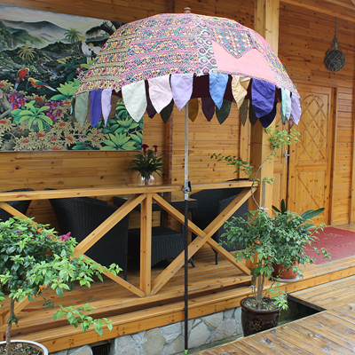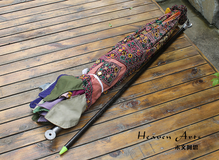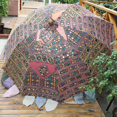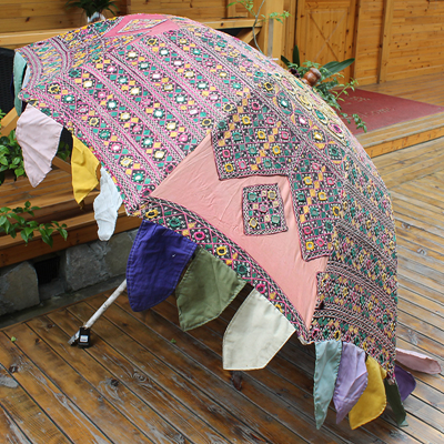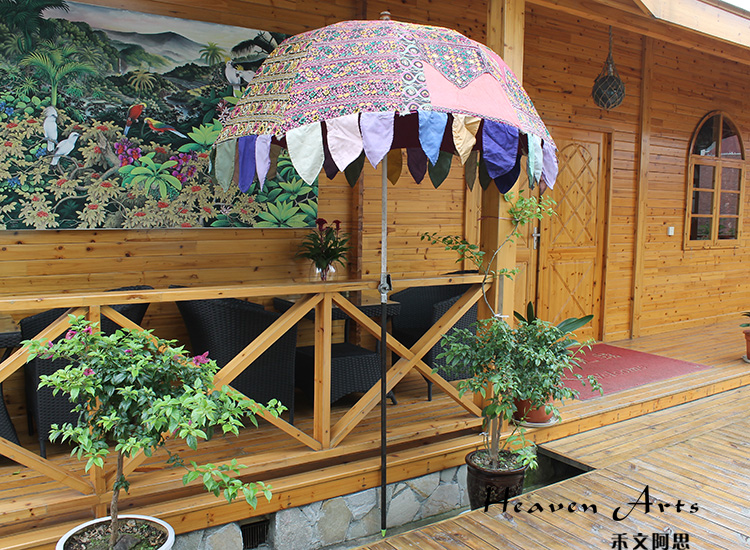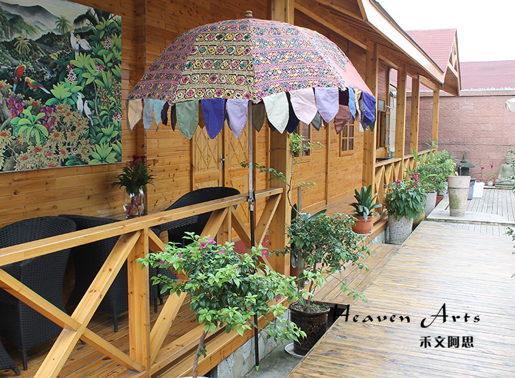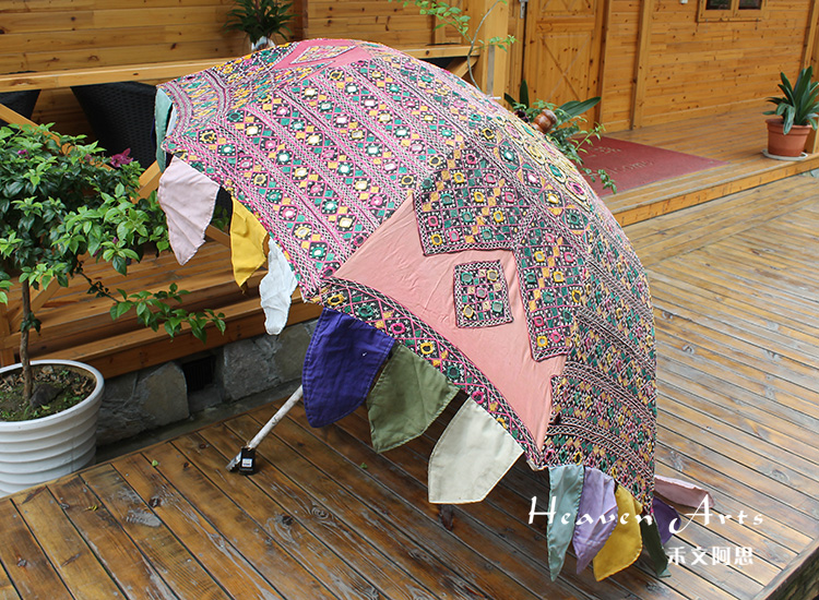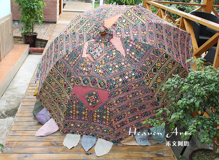 印度手工绣花太阳伞将这一奇妙艺术于阳光下灿烂绽放。2014年9月17日习近平主席的印度之行,将这种极具异域风情的太阳伞推上了时尚热门。禾文阿思印度太阳伞以手工在伞面上绣出各种雅致的图案,简约的花纹搭配缤纷绚丽的色彩,渲染出粹而热情的异域气息。不同花色的组合使太阳伞呈现不同的热情风味,加以弧形花边装饰,使伞的风味越发浪漫袭人。源自印度的古来手工绣花工艺,与时尚太阳伞融合,撑出一片灿烂的花样世界。