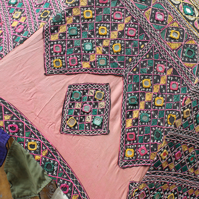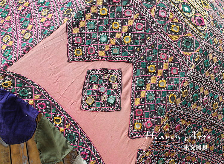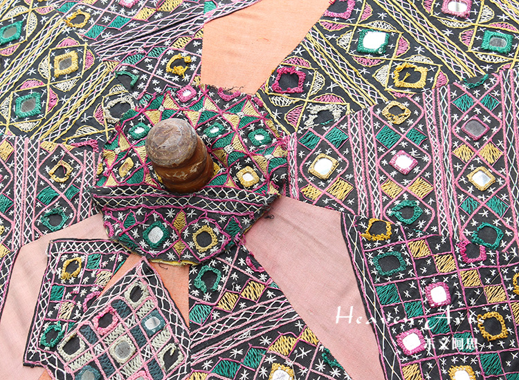 在古老的印度,人们将植物的果实和彩色的石头镶嵌在衣服上,认为这可以得到神灵的庇佑,可以抵挡住邪恶的侵袭。随着岁月的流逝,人们将这样的装饰传承下来,慢慢的发展为精致的绣花钉珠的装饰。现在,绣花钉珠的装饰已经成为印度风情不可或缺的一部分,印度人将这项奇妙的艺术发挥到极致。