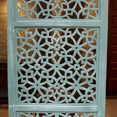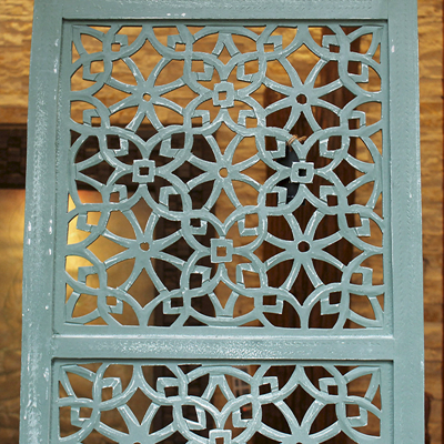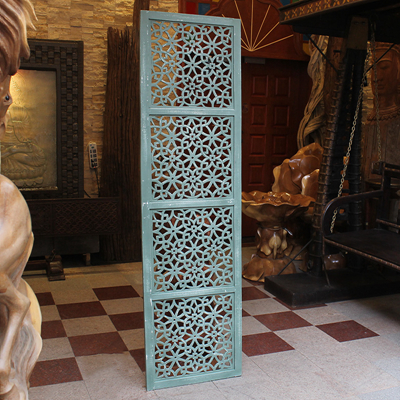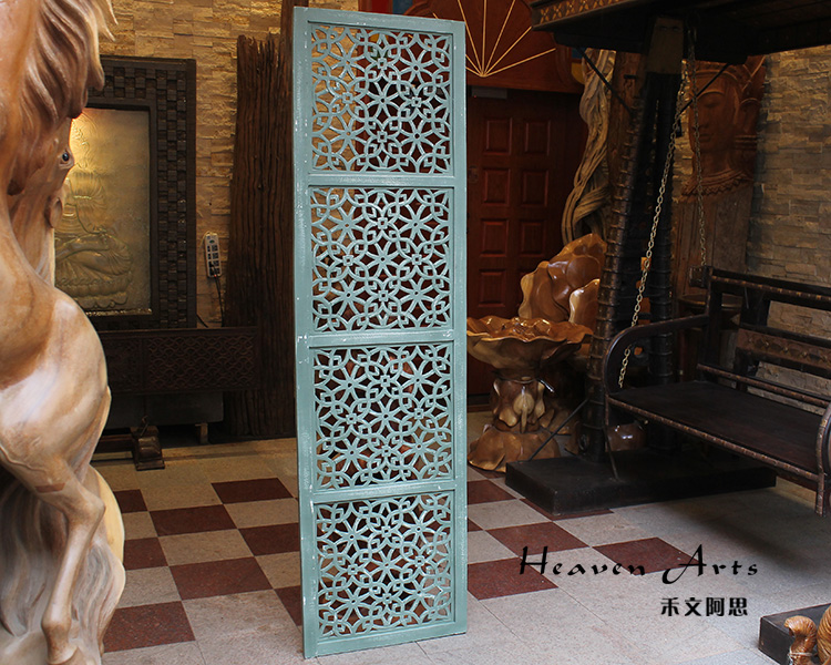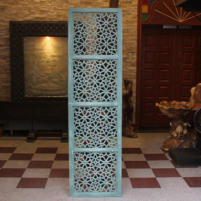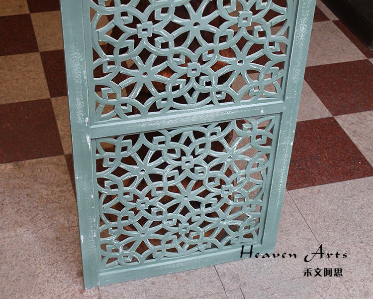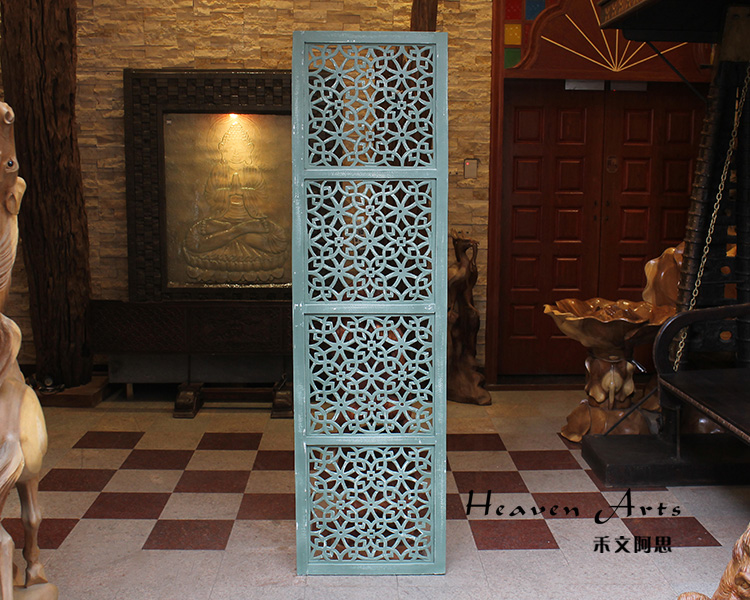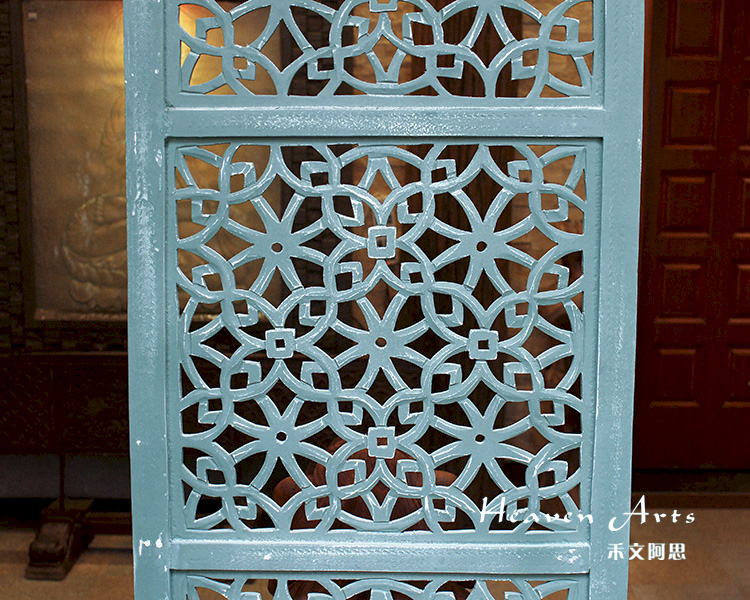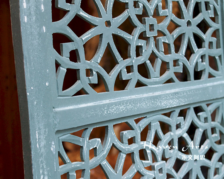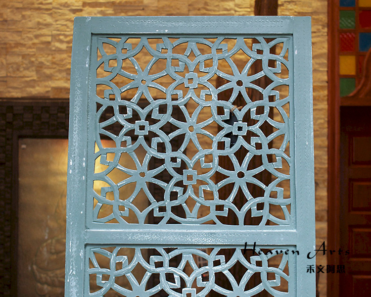 半米宽的单片精雕芒果木屏风,清新几何花纹雕刻其上,呈现出一种和谐宁静之美。双面镂空雕刻的花屏风,彰显着能工巧匠的非凡技艺,同时也赋予了屏风多角度观赏的精致美感。干净利落的方正边框线条,使屏风透着庄严秀美之感。整体雕刻皆采用繁复花纹,统一而富有变化的花纹,尽显十足美感。手工雕刻的万花,搭配镂空精致的雕琢,使稀稀疏疏的光线得以穿透,为芒果屏风蒙上清雅美好的氛围。极具民族传统特色的手工屏风,将清丽之美美凝聚其上,陈设在居室中自能营造一片自然美好。