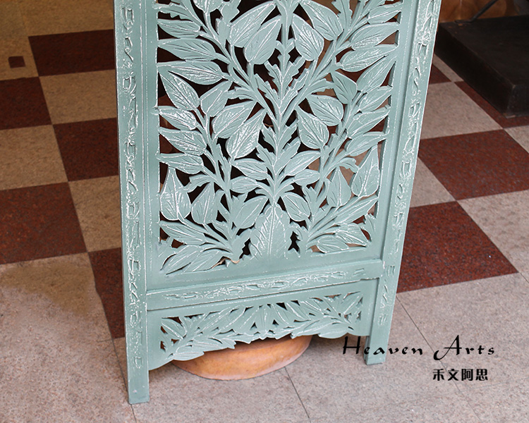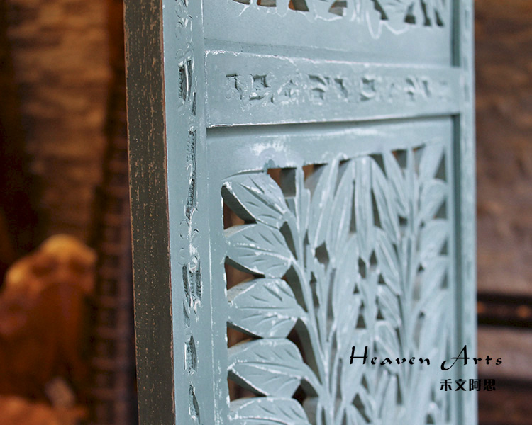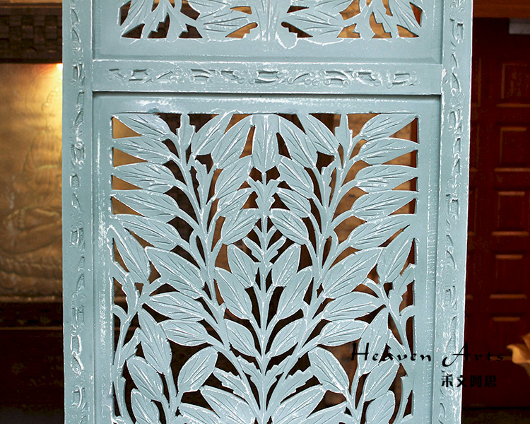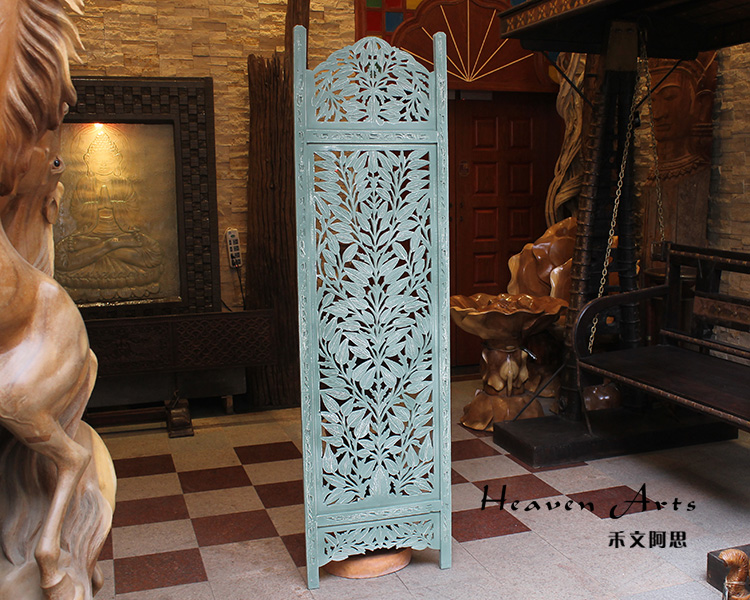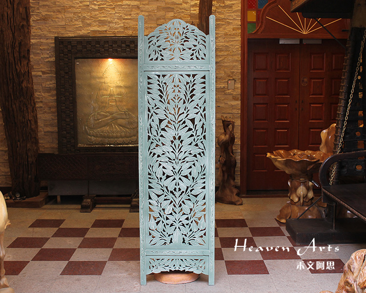 【特价】芒果木精雕单片屏风(多用)-柳藤青叶