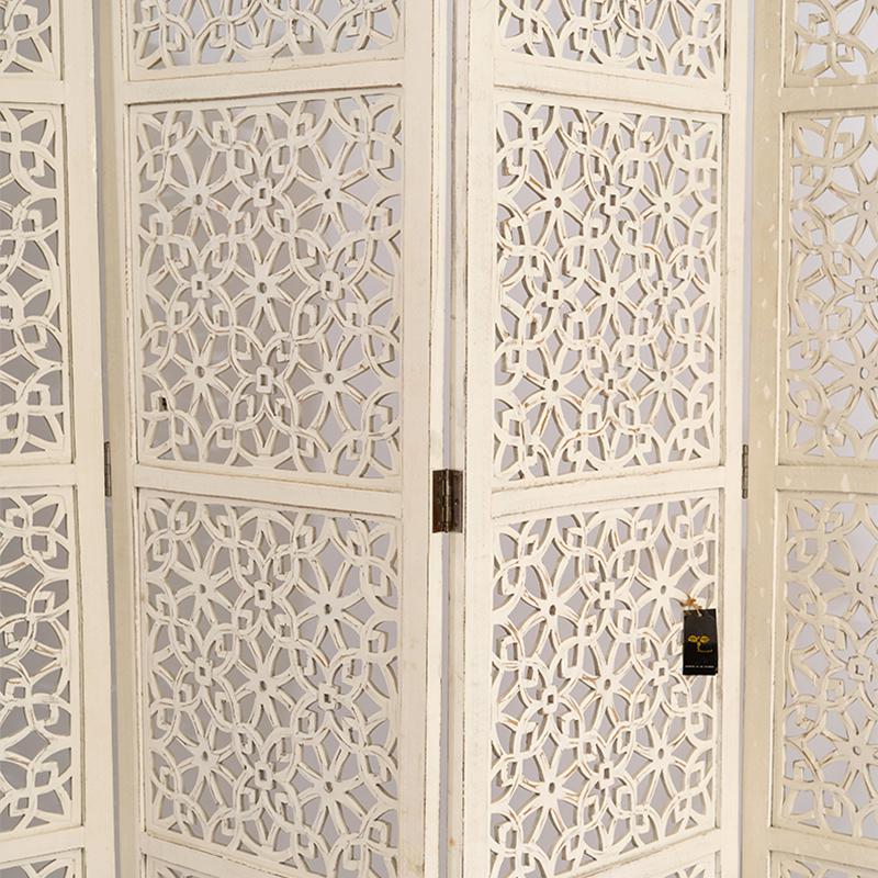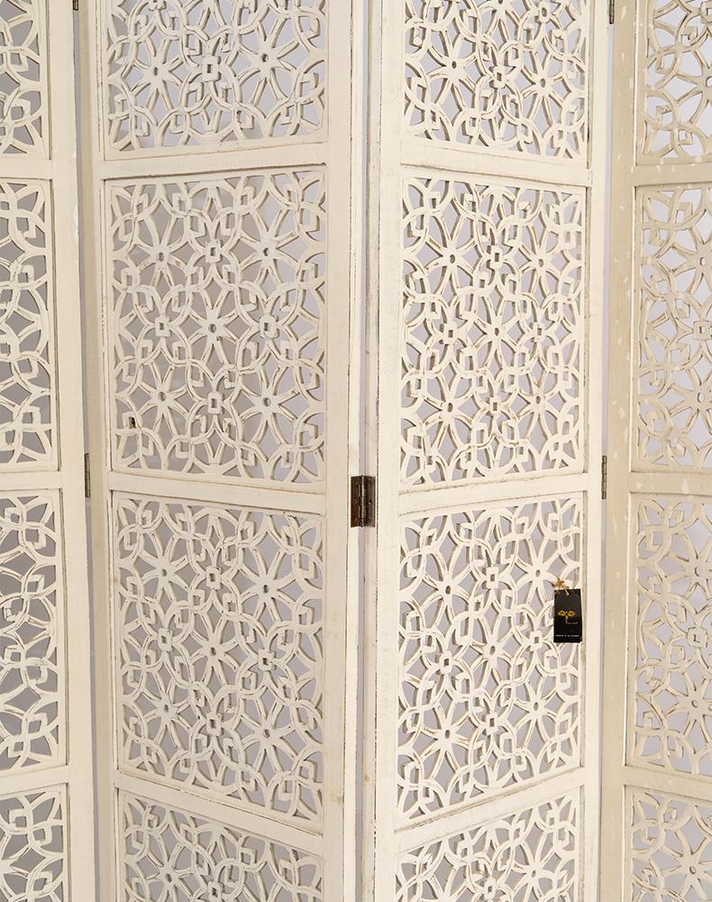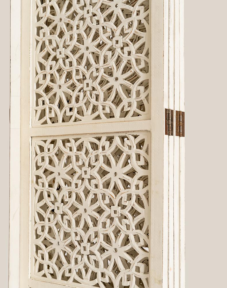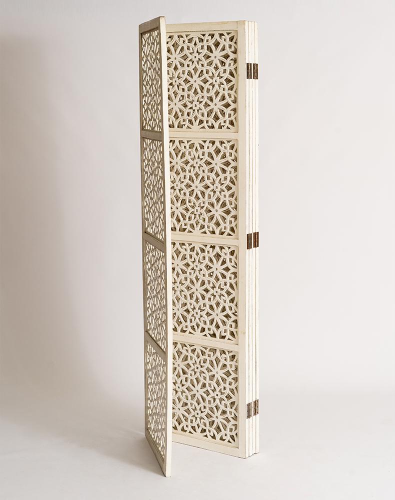 半米宽的单片精雕芒果木屏风,清新几何花纹雕刻其上,呈现出一种和谐宁静之美。双面镂空雕刻的花屏风,彰显着能工巧匠的非凡技艺,同时也赋予了屏风多角度观赏的精致美感。干净利落的方正边框线条,使屏风透着庄严秀美之感。整体雕刻皆采用繁复花纹,统一而富有变化的花纹,尽显十足美感。手工雕刻的万花,搭配镂空精致的雕琢,使稀稀疏疏的光线得以穿透,为芒果屏风蒙上清雅美好的氛围。极具民族传统特色的手工屏风,将清丽之美美凝聚其上,陈设在居室中自能营造一片自然美好。