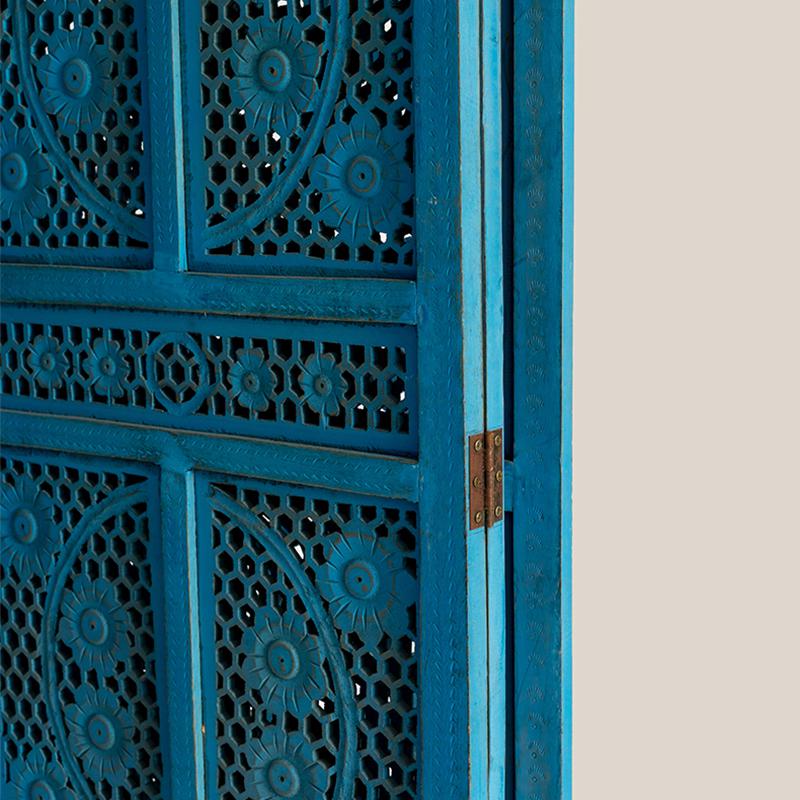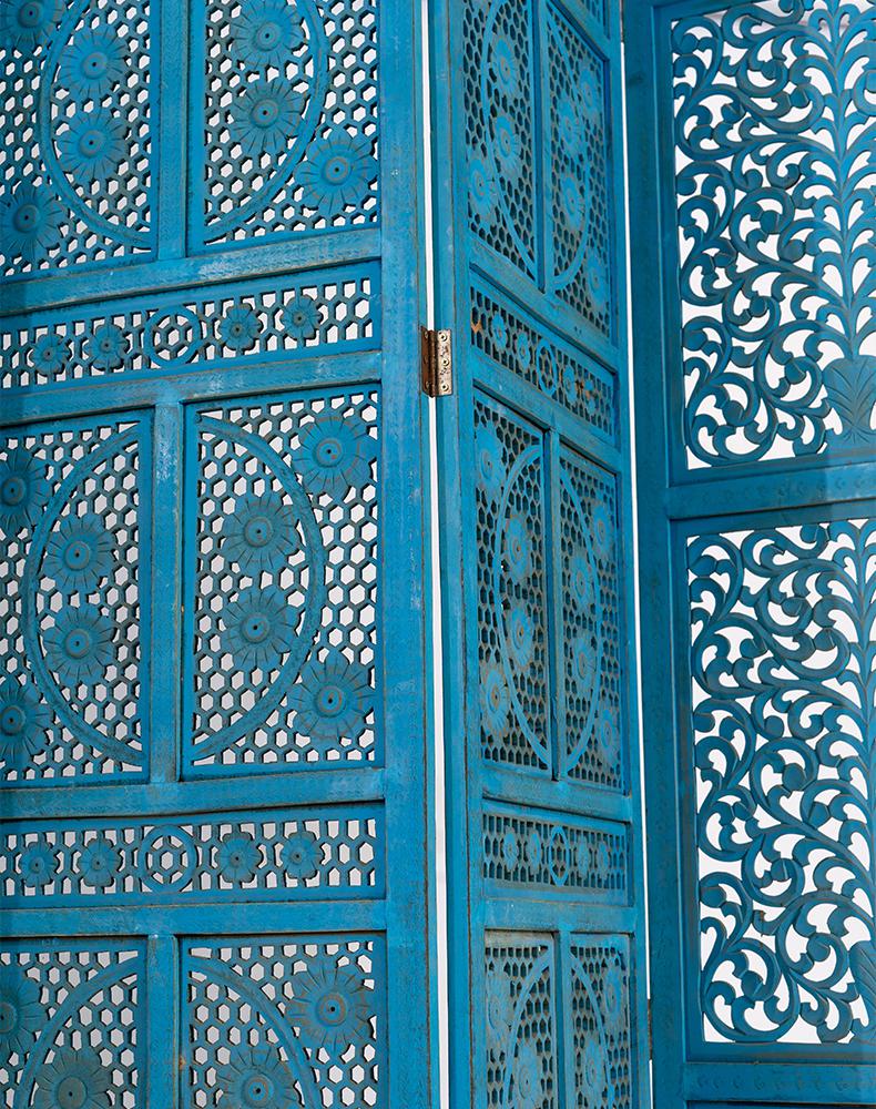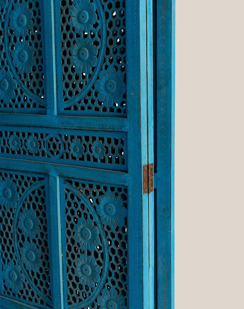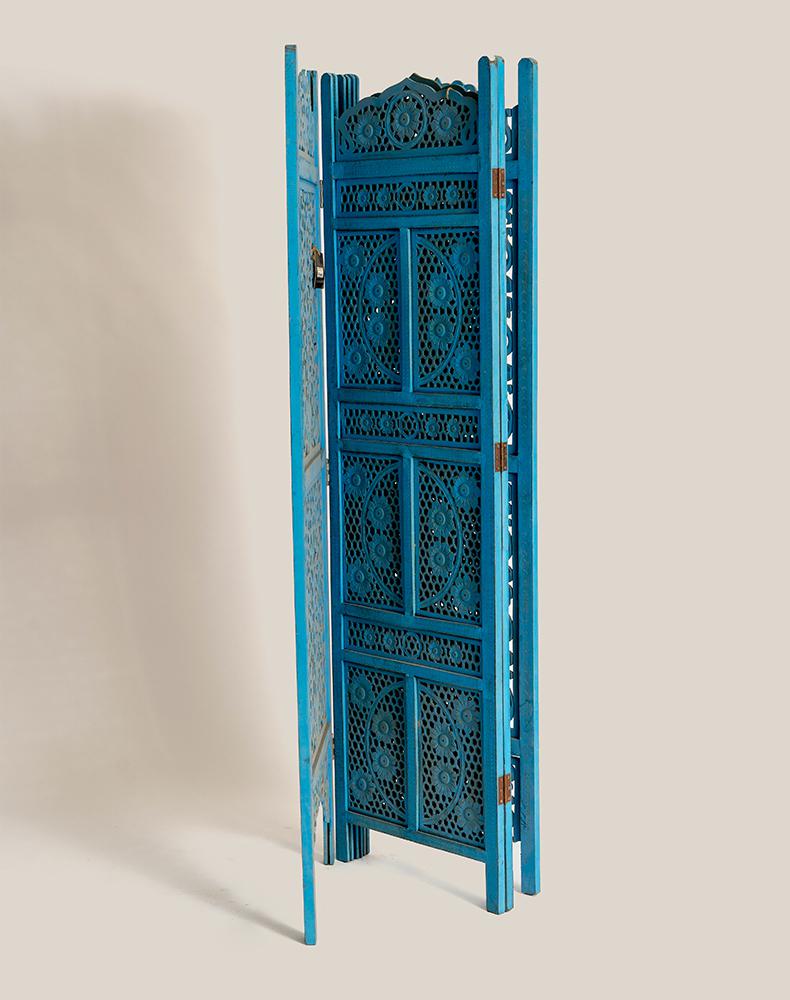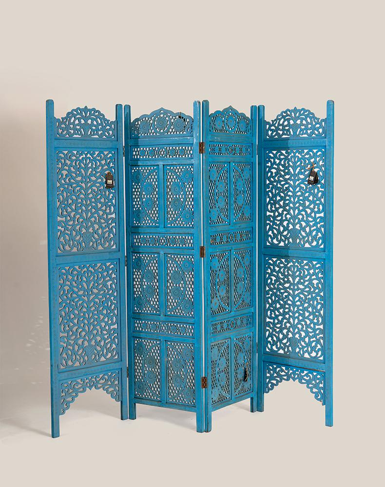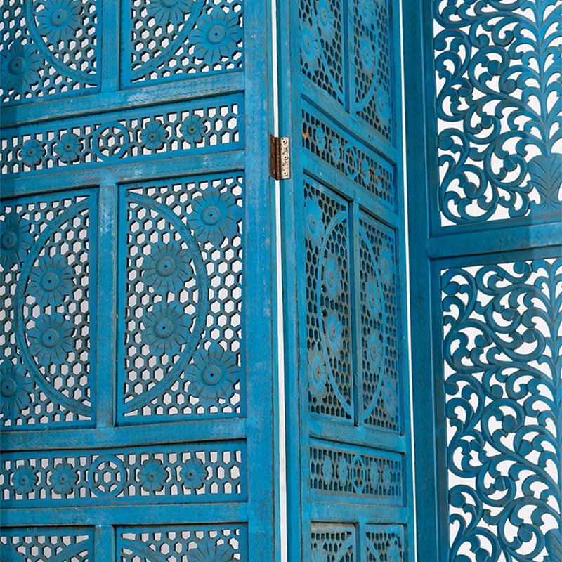 半米宽的单片精雕芒果木屏风,清新叶花纹雕刻其上,呈现出一种和谐宁静之美。双面镂空雕刻的花屏风,彰显着能工巧匠的非凡技艺,同时也赋予了屏风多角度观赏的精致美感。屏风顶上伊斯兰风情的宝顶样式,描绘出浪漫雅致的南亚之风。整体雕刻皆采用海浪花纹,统一的造型在海浪层叠之中,尽显十足美感。边框上的弧形雕花描绘出细节上的清美。手工雕刻的藤叶,搭配镂空精致的雕琢,使稀稀疏疏的光线得以穿透,为芒果屏风蒙上清雅美好的氛围。极具民族传统特色的手工屏风,将清丽之美美凝聚其上,陈设在居室中自能营造一片自然美好。