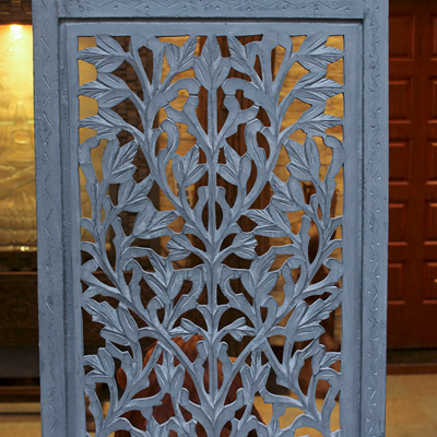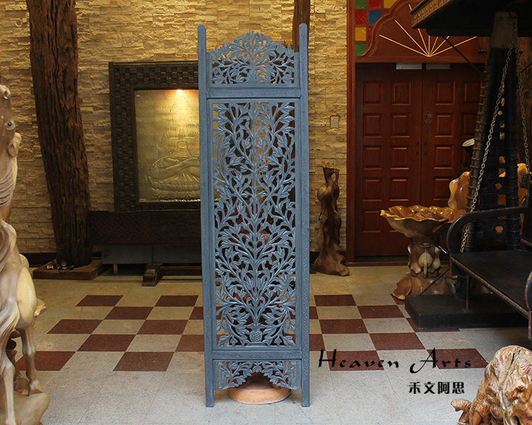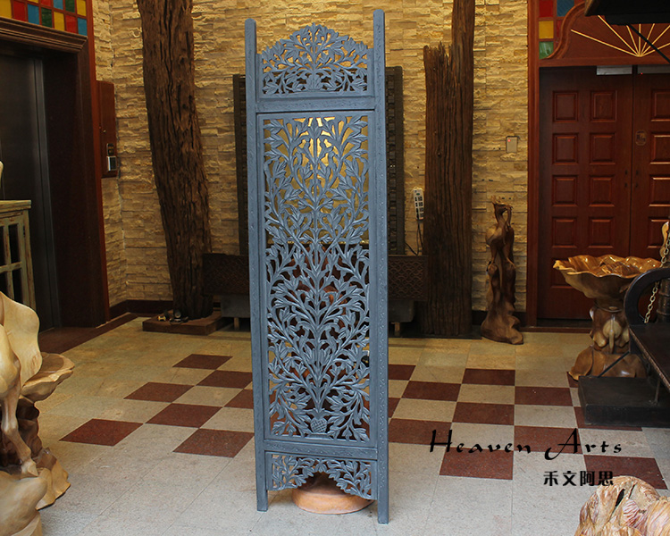 【特价】芒果木精雕单片屏风(多用)-青叶50*2.3(厚)*183cm