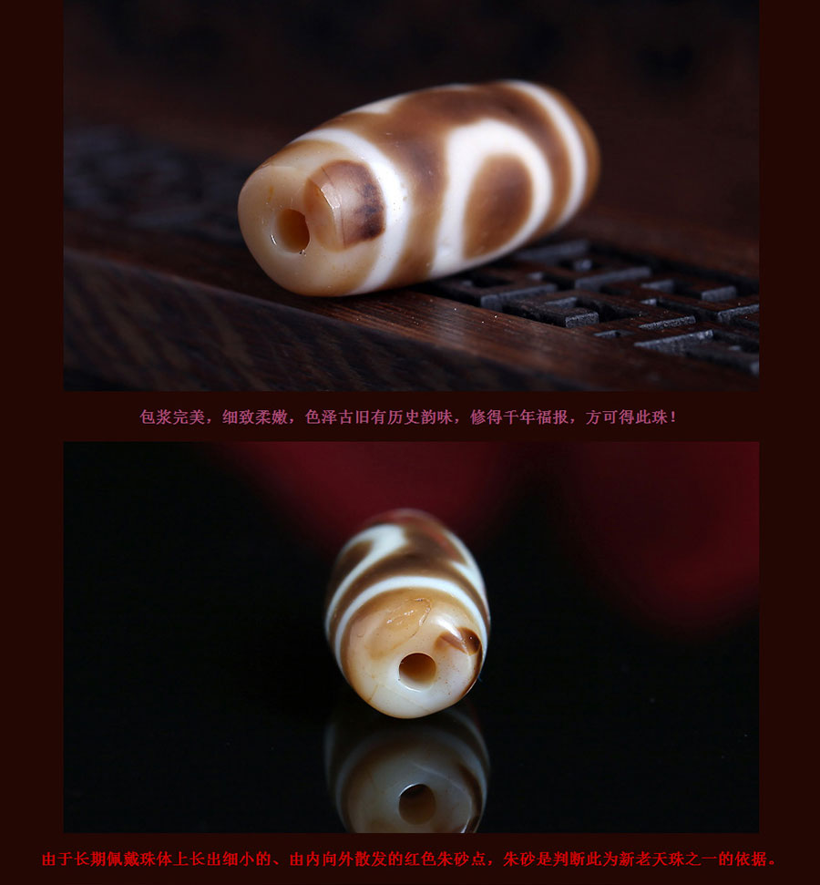 〓藏传珍品〓千年两眼西藏老天珠-满风化带朱砂龙纹