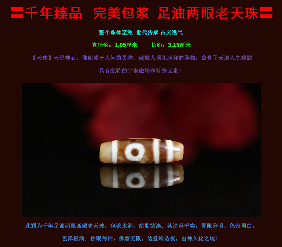 〓千年臻品〓足油两眼西藏老天珠