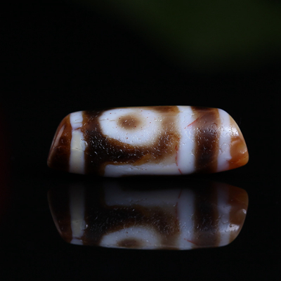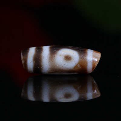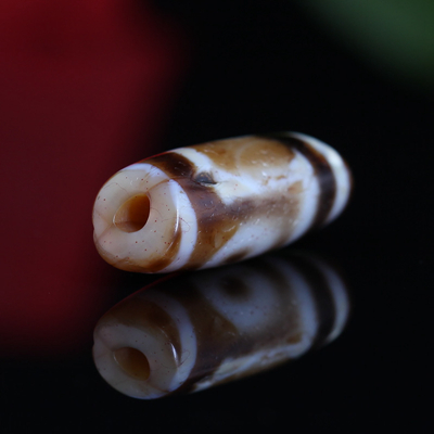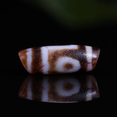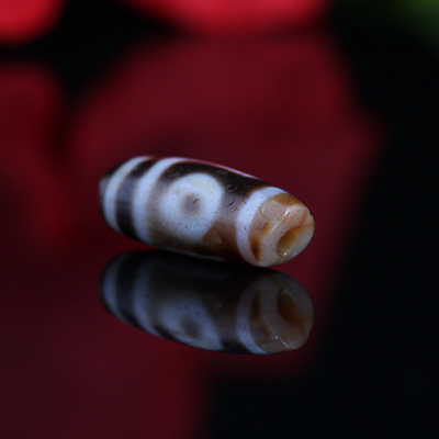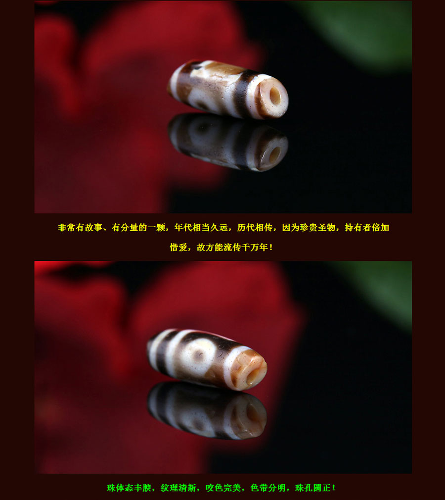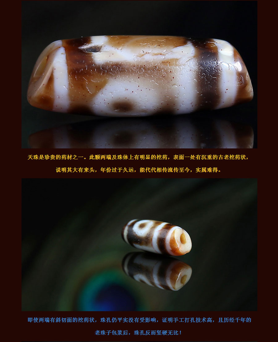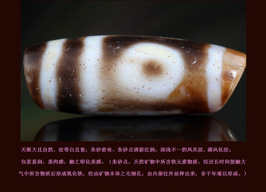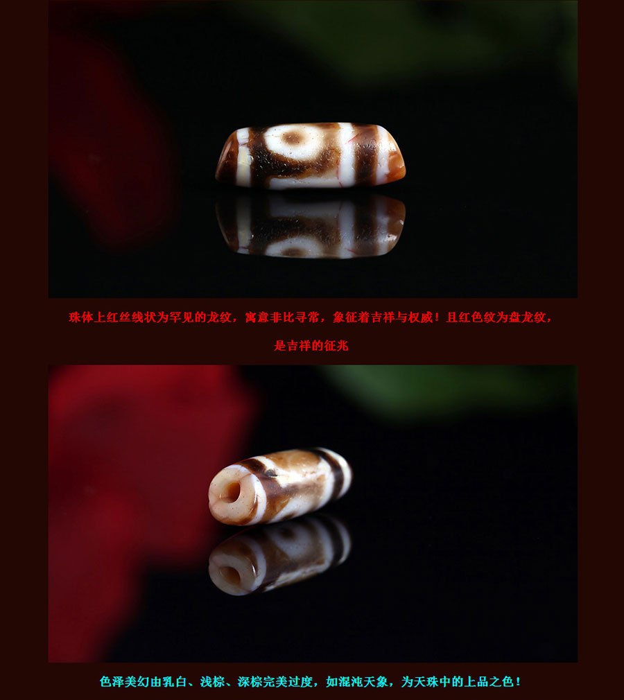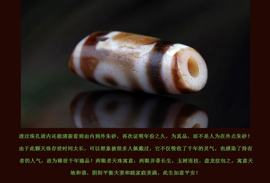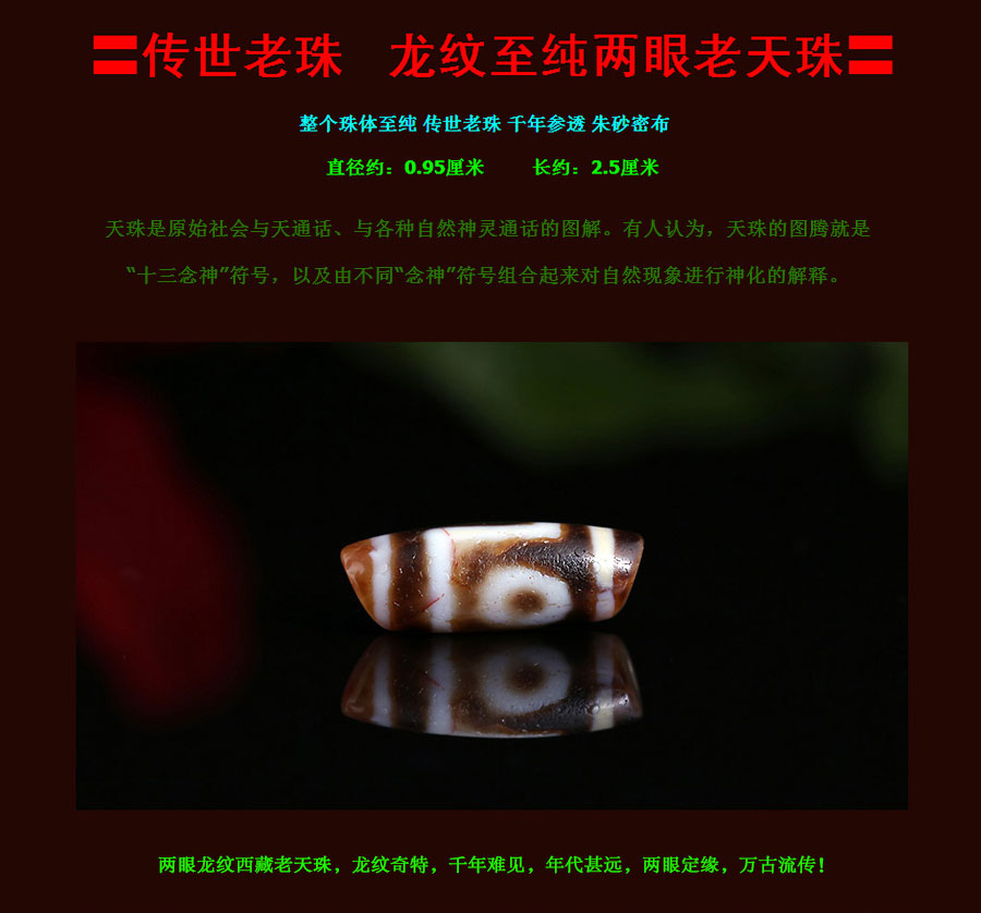 〓藏传珍品〓千年两眼西藏老天珠-满风化带朱砂龙纹