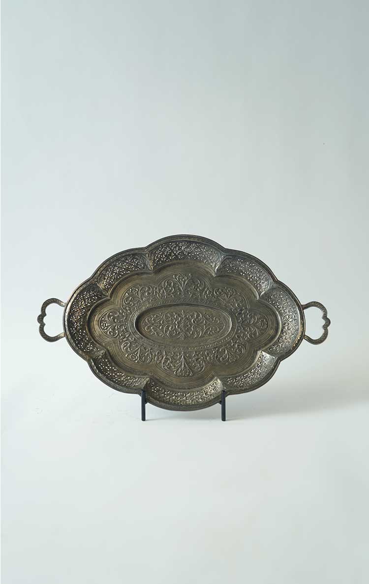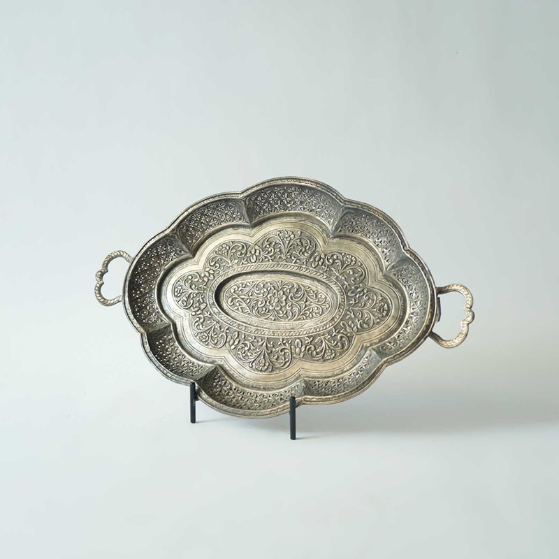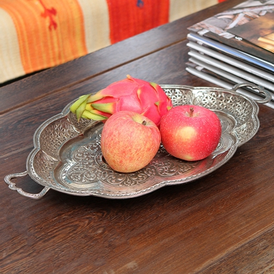 铜鎏银果盘茶托盘45.8*35.5*2.5cm