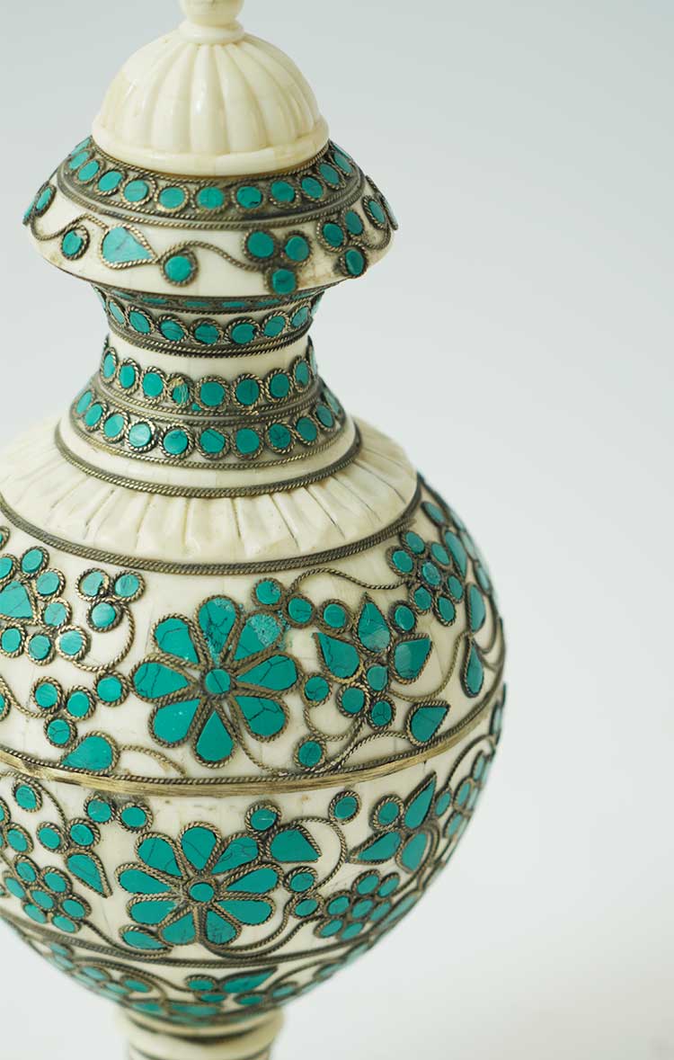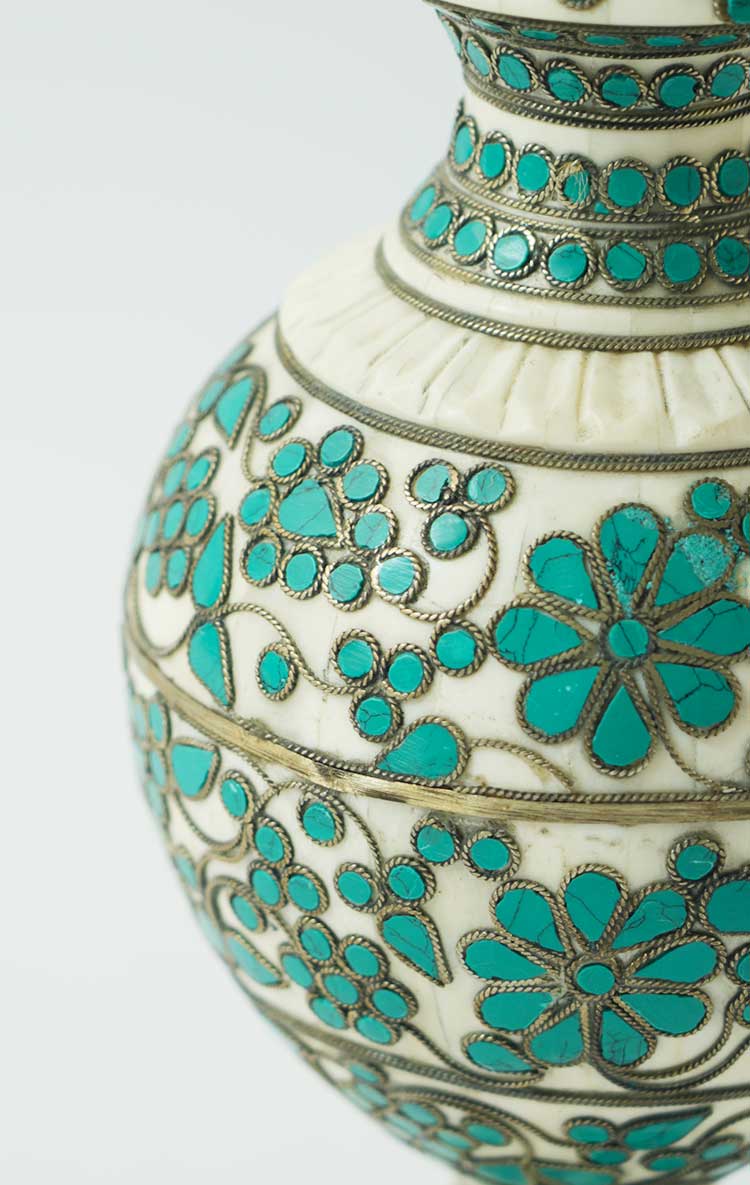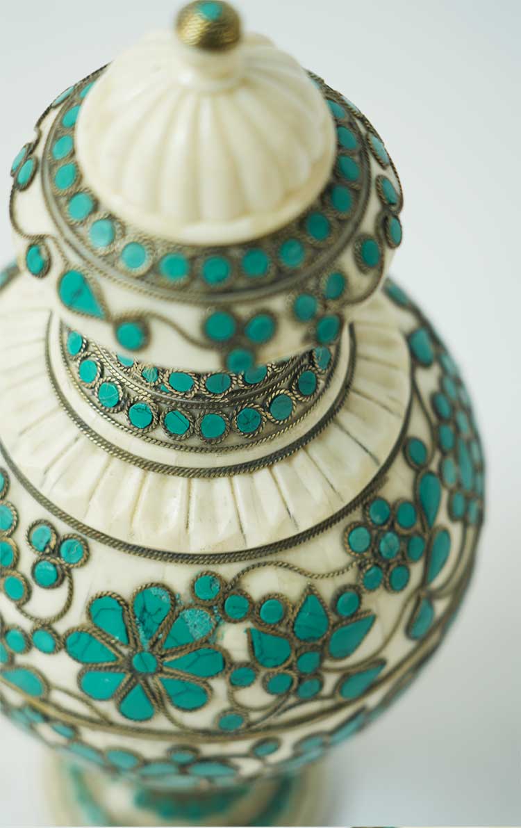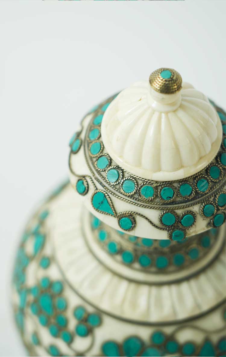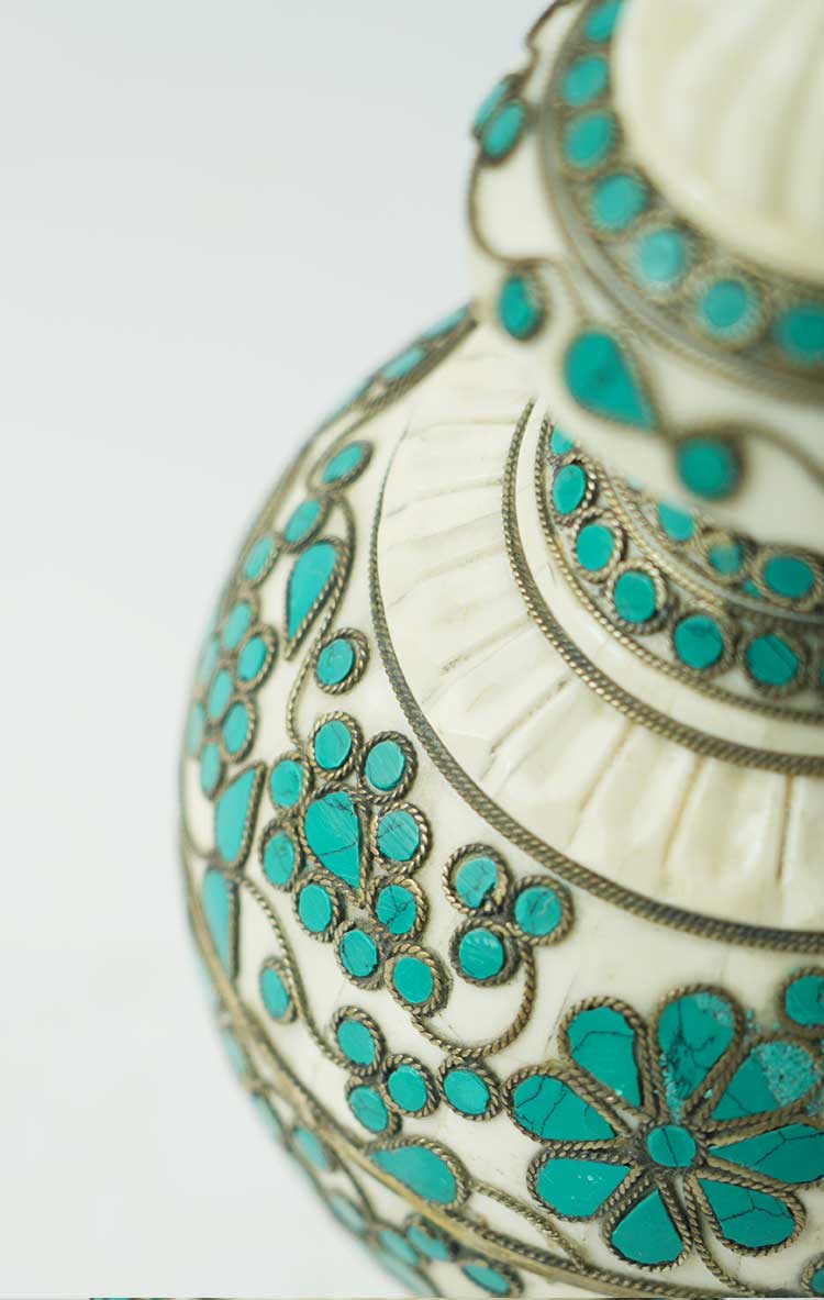 和藏民生活息息相关的牦牛是美好的神圣的动物,玛尼堆上人们把牦牛的头骨刻上经文作为献祭,同时,牦牛骨也是一种独特的装饰品,原始自然、粗犷豪放,给佩带者增添一种野性的魅力!