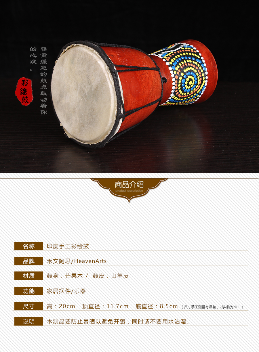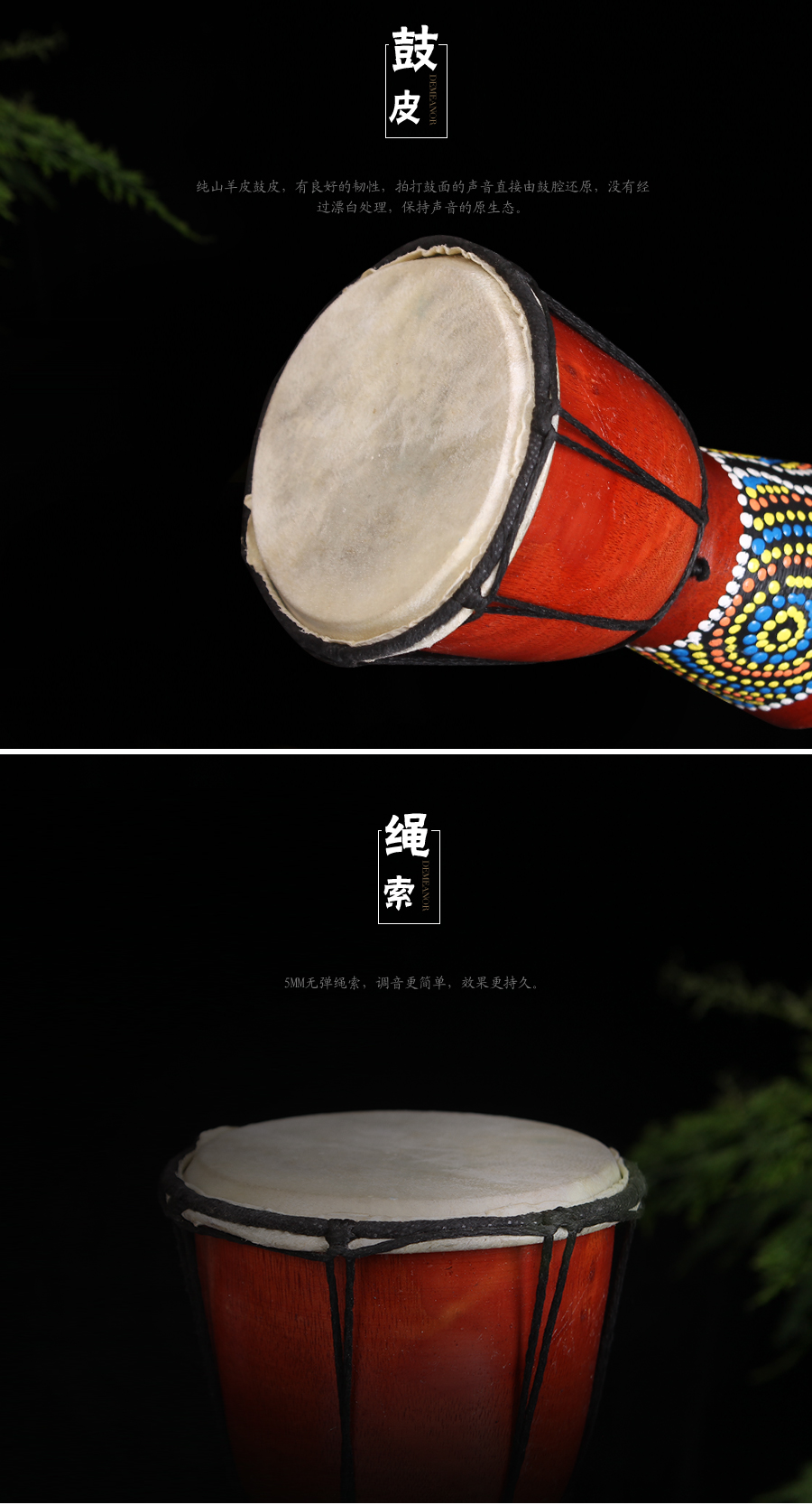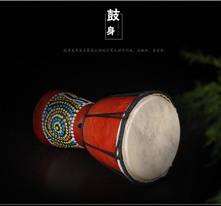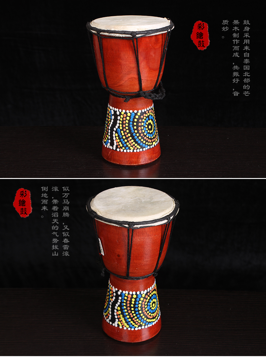 疗愈手鼓非洲鼓4寸儿童成人初学演奏入门山羊皮整木掏空雕刻
