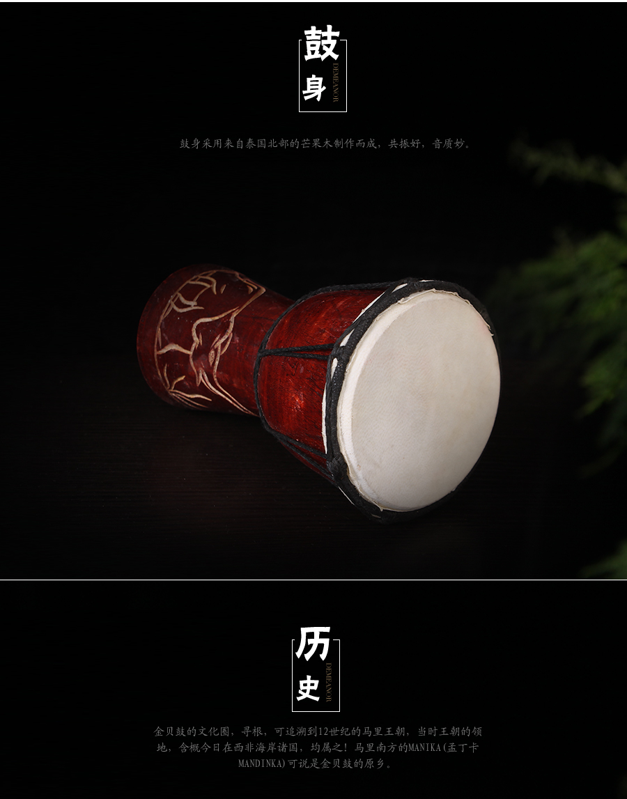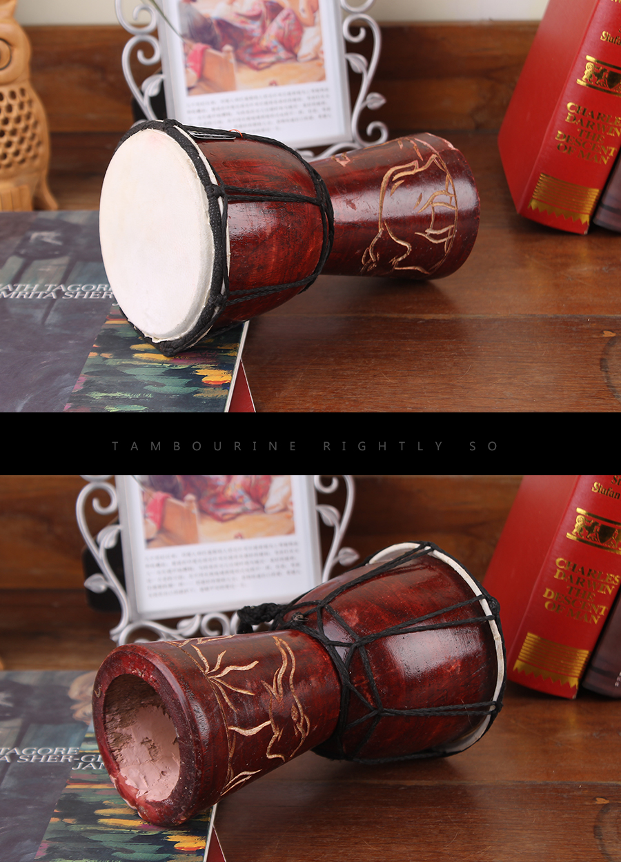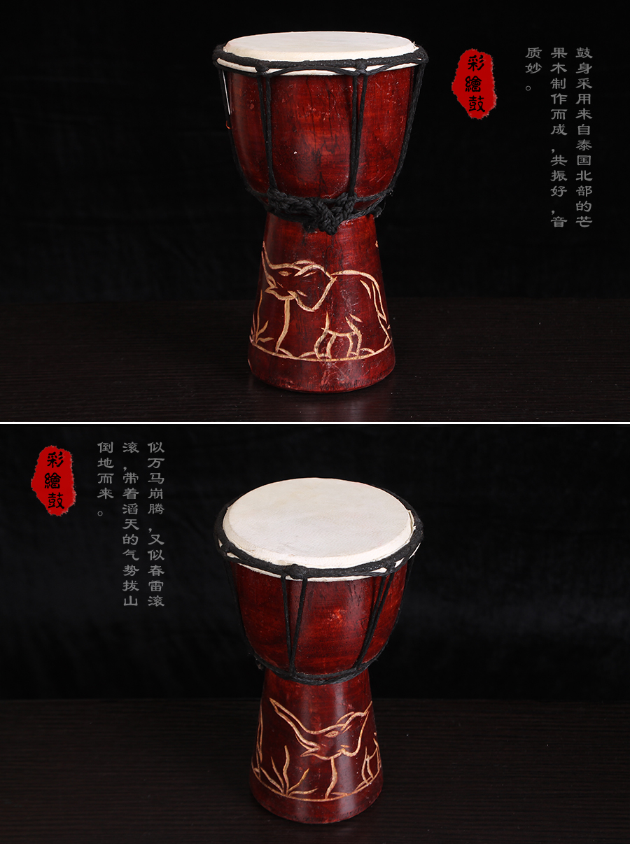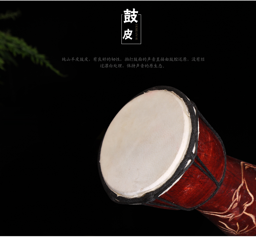 疗愈手鼓非洲鼓4寸儿童成人初学演奏入门山羊皮整木掏空雕刻