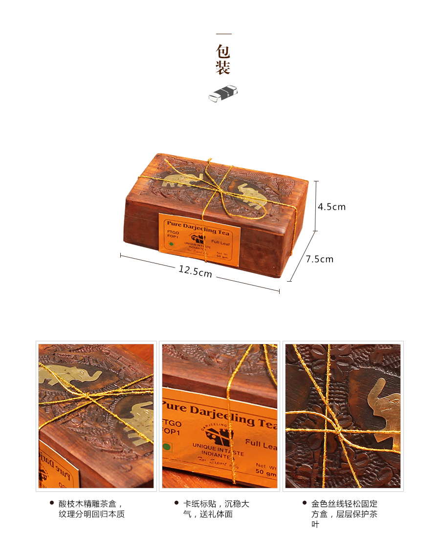 印度进口大吉岭红茶PureDarjeelingTea送 酸枝木首饰盒多用盒