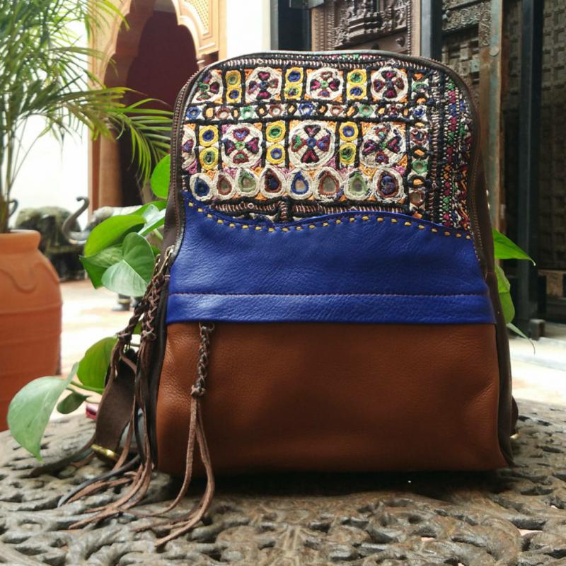 手工绣花真皮双肩包