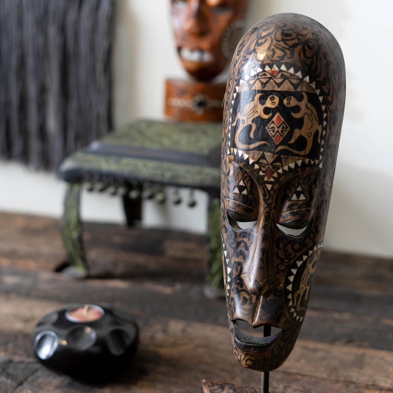 东南亚复古创意抽象实木面具摆件客厅家居酒柜装饰品挂饰手工品