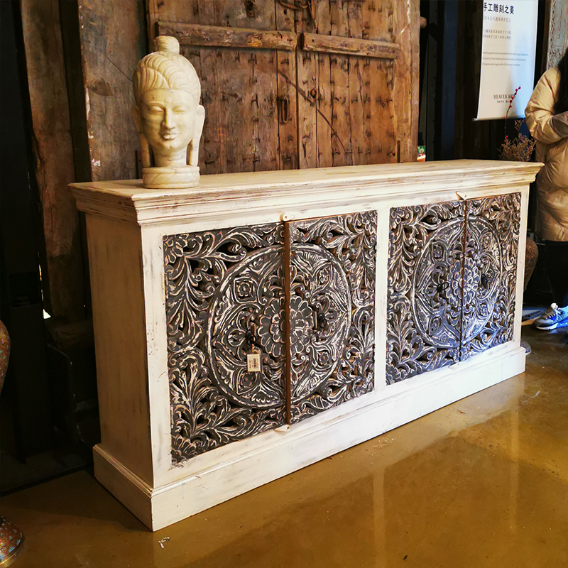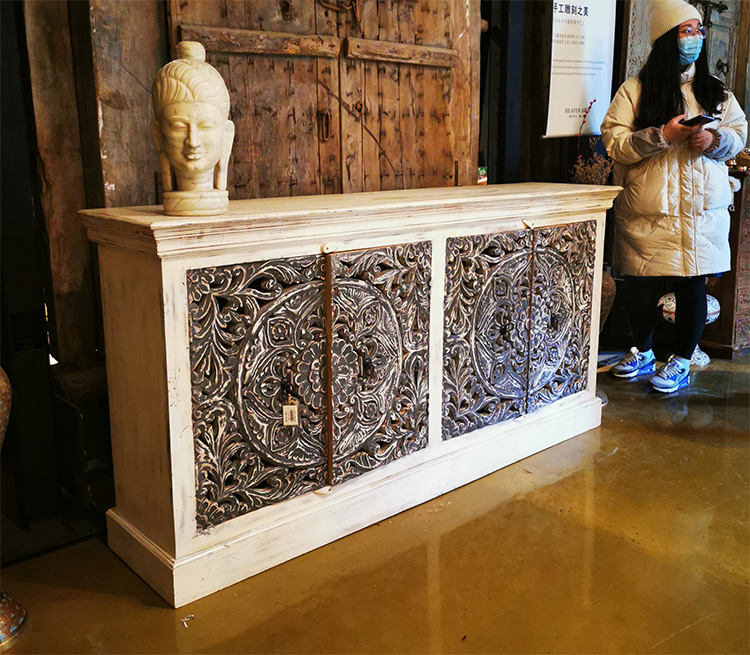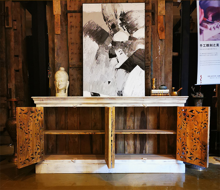 实木雕花茶柜茶棚收纳柜112.5*36.5*128cm