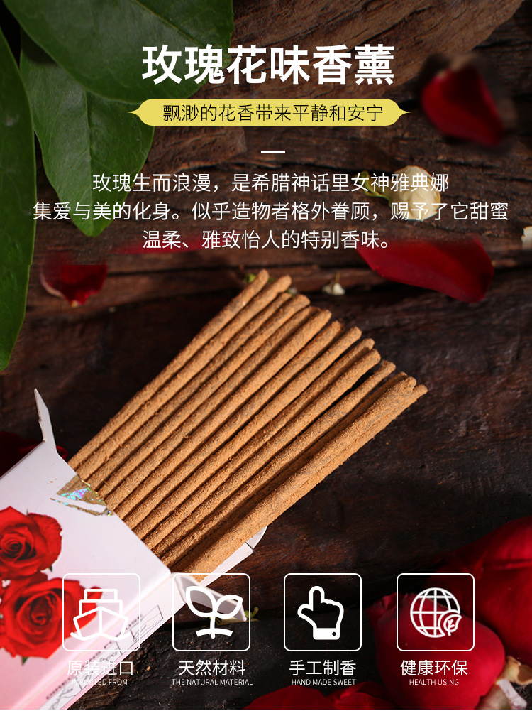 使用:自然散发香氛或点燃后熄灭明火进行燃烧挥发香味。
