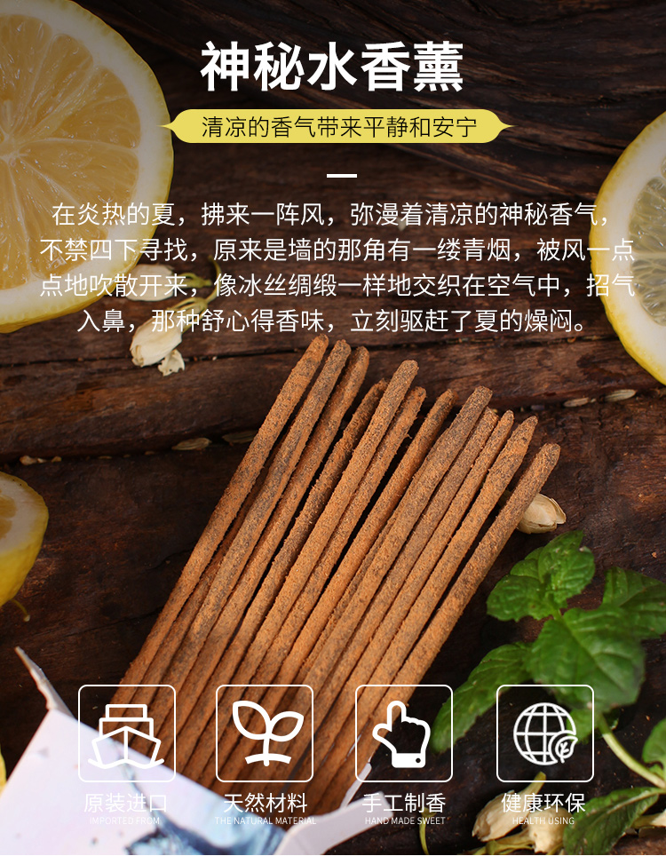 使用:自然散发香氛或点燃后熄灭明火进行燃烧挥发香味。