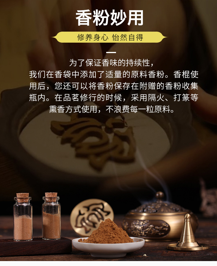 使用:自然散发香氛或点燃后熄灭明火进行燃烧挥发香味。