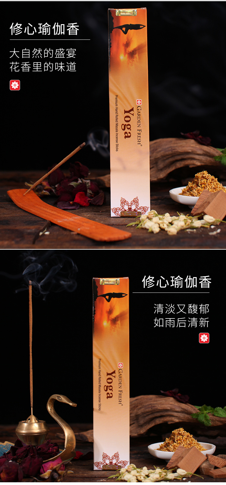 使用:自然散发香氛或点燃后熄灭明火进行燃烧挥发香味。