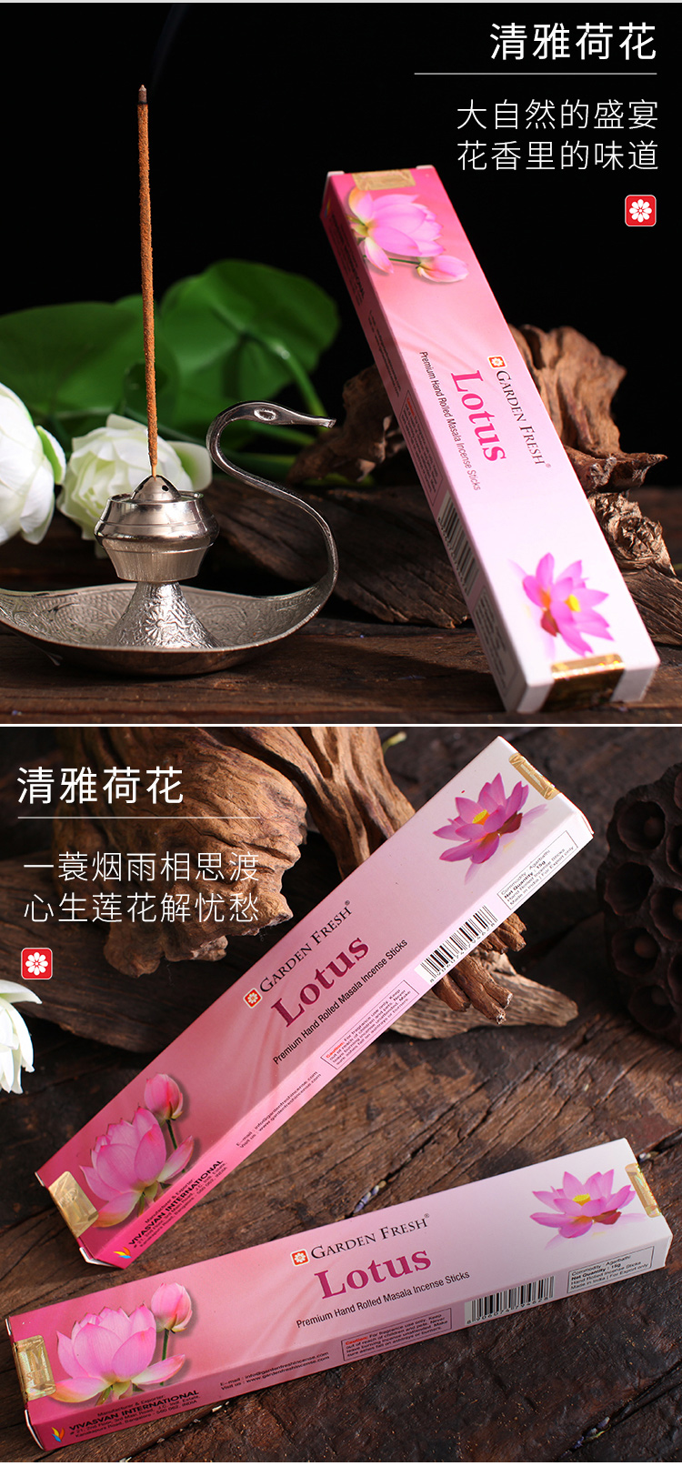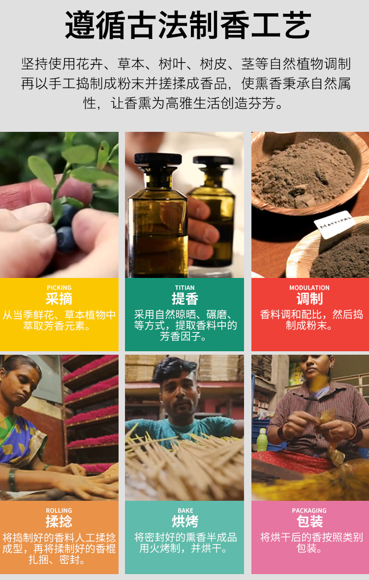 使用:自然散发香氛或点燃后熄灭明火进行燃烧挥发香味。
