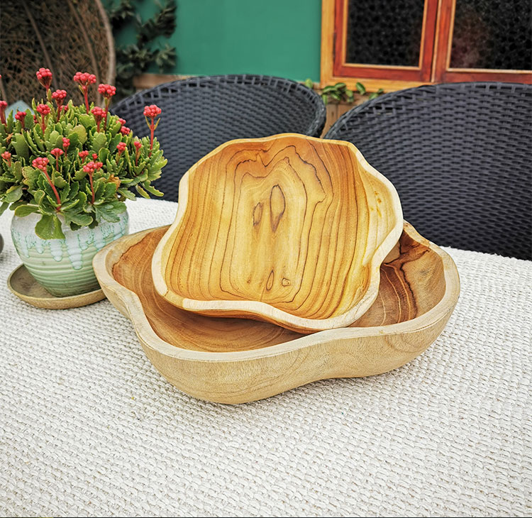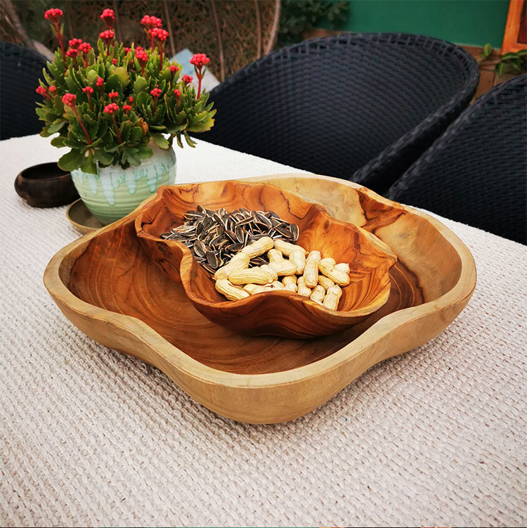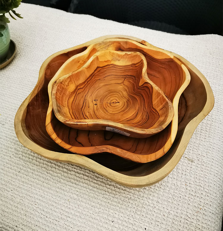 原生态柚木果盘果盆34.5*29.5*6.8cm