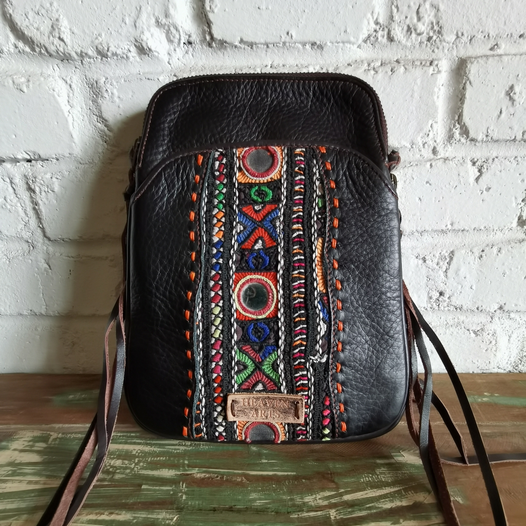 手工绣花真皮挎包