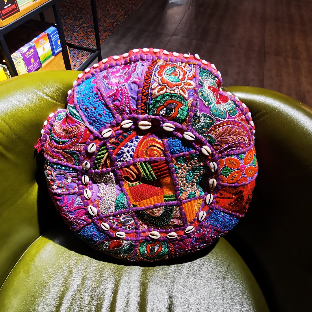 达伽布绣工圆靠垫抱枕40*40*6cm