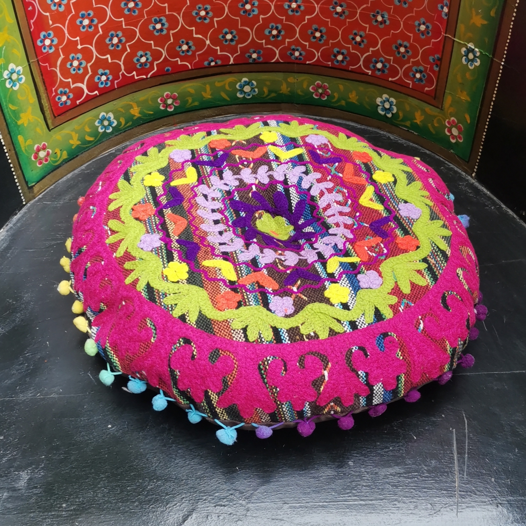 绣花圆靠垫抱枕38*38*9cm