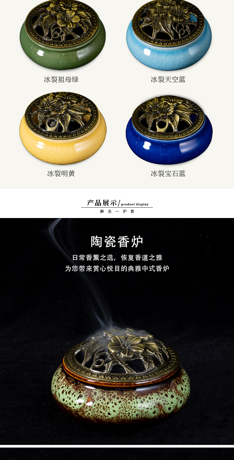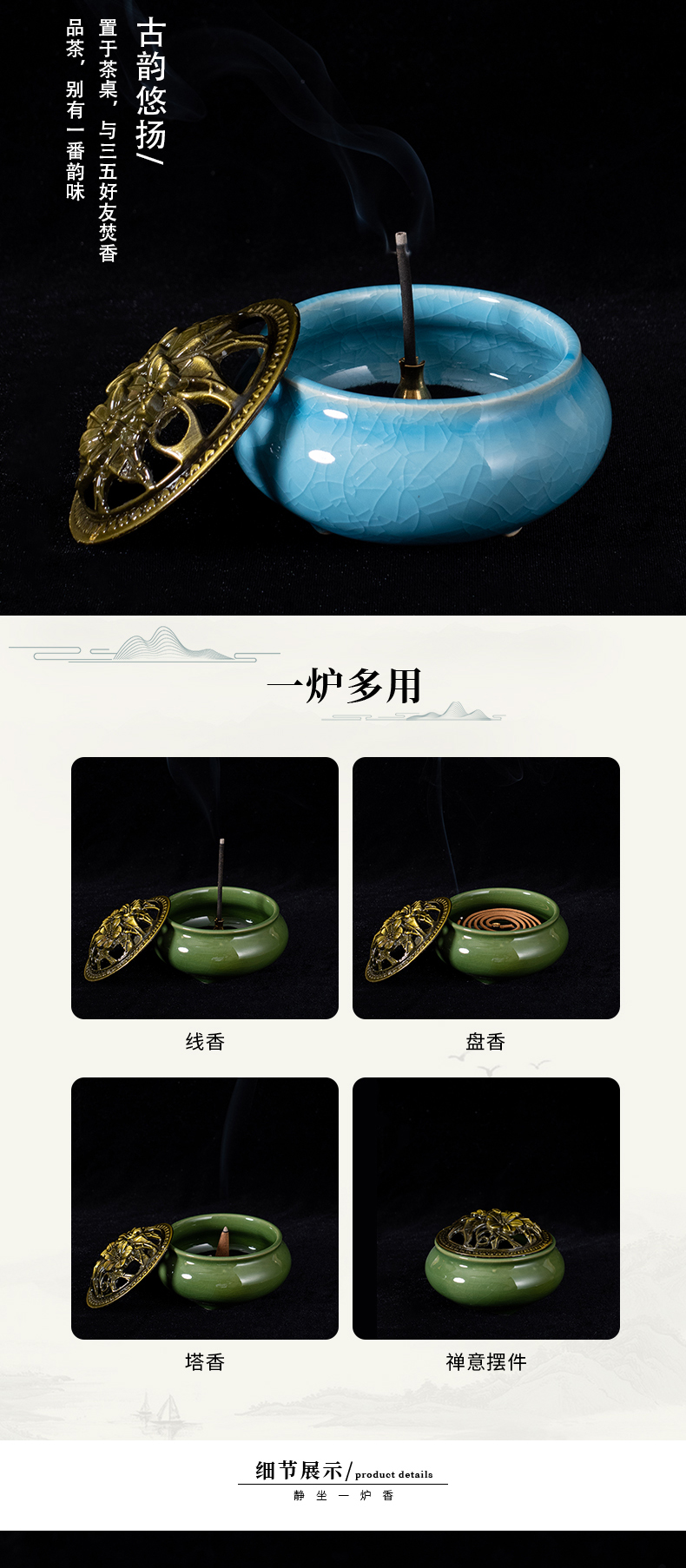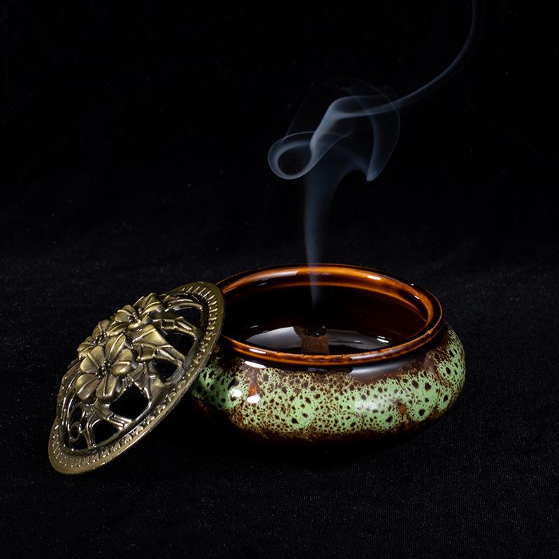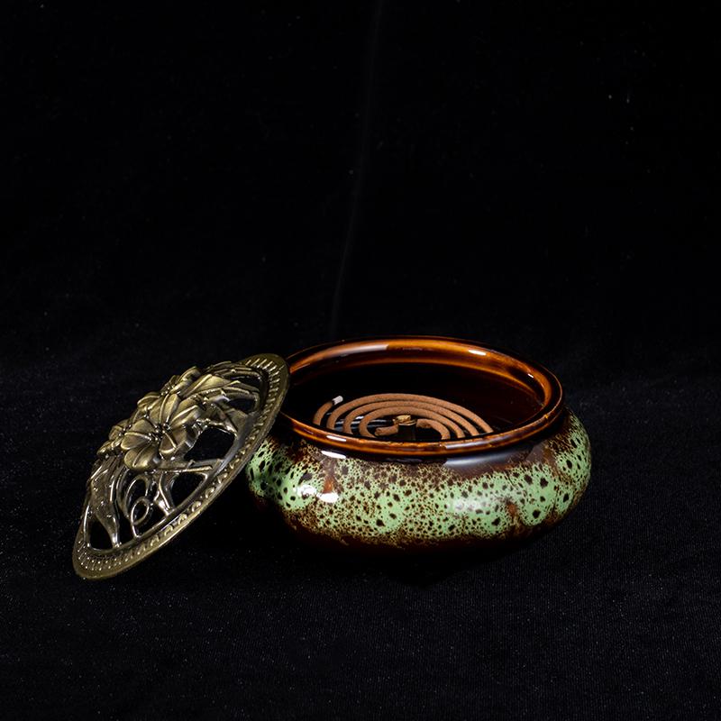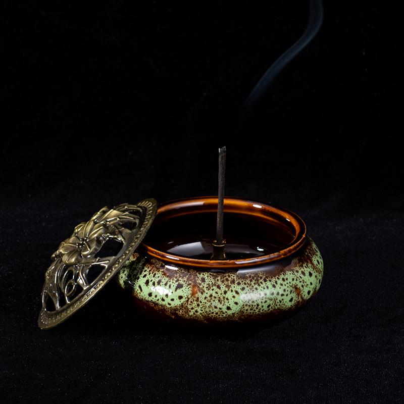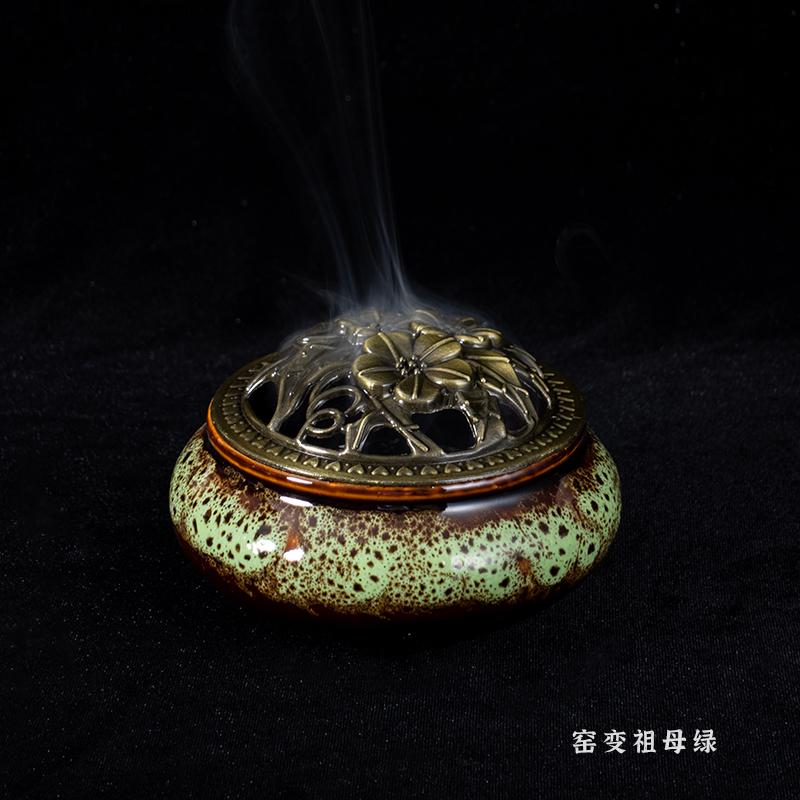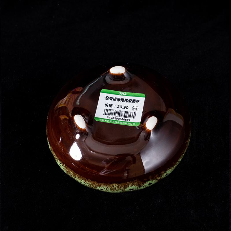 窑变祖母绿线香盘香多功能陶瓷香炉10*10*6.5cm