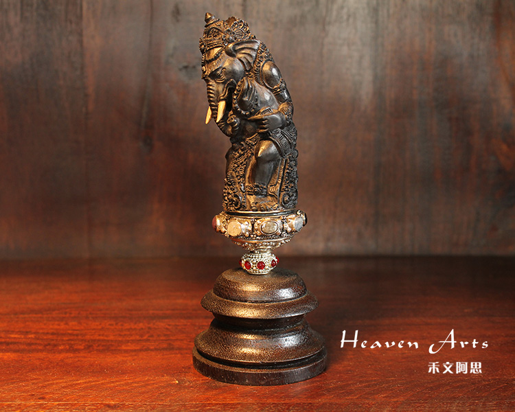 乌木象鼻财神摆件【藏品】no019