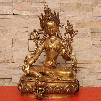 嵌绿松石鎏金挂坠-绿度母(精品)no236