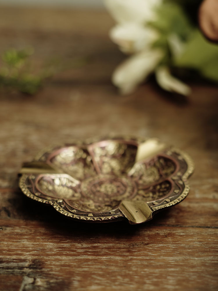 花瓣形铜烟灰缸10.3*10.3*1.1cm