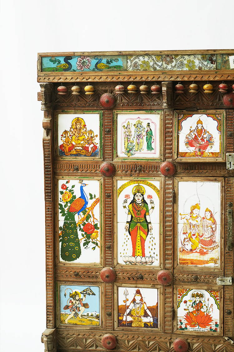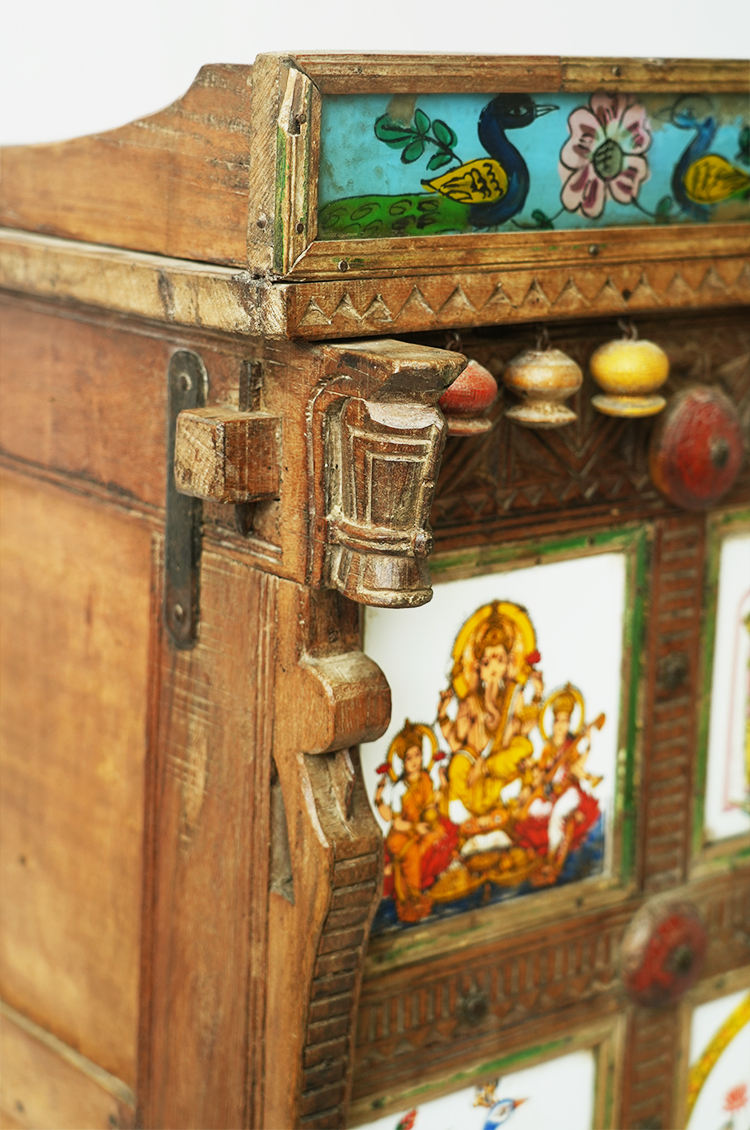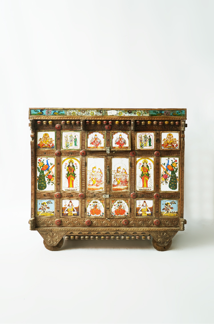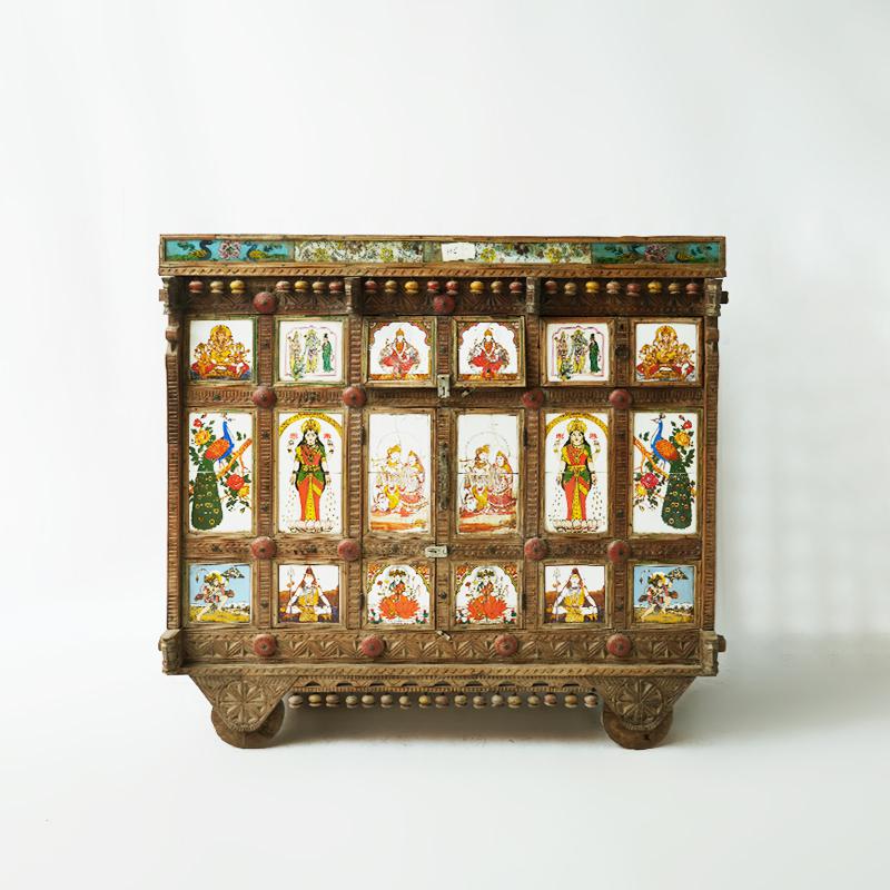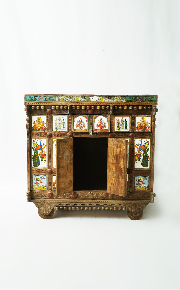 彩瓷雕花马头柜储物柜130*67*128.5cm