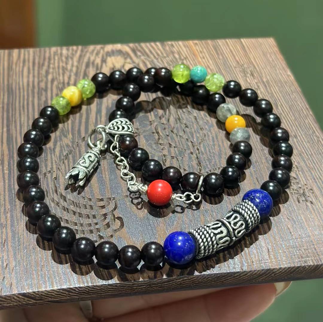 925银青金石琥珀手链