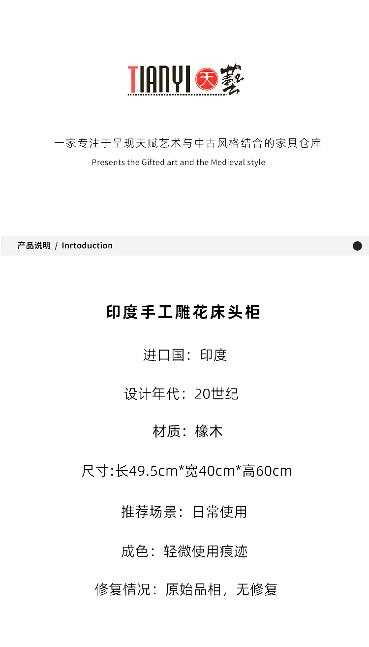 印度手工雕花床头柜49.5*40*60cm
