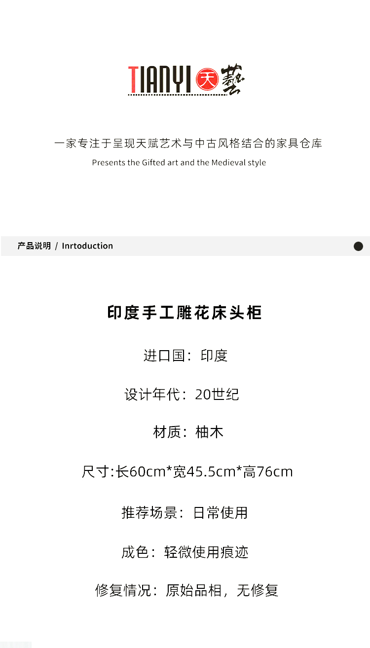 印度手工雕花床头柜60*45.5*76cm