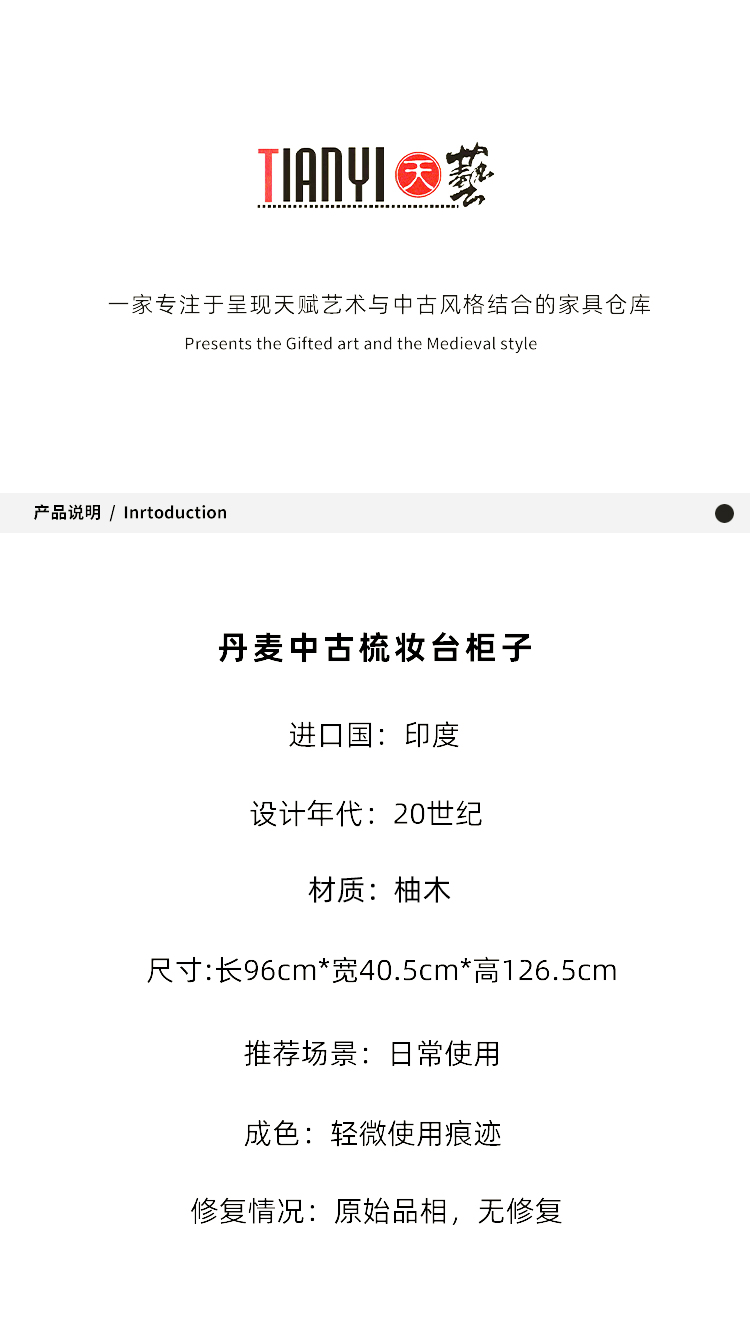 丹麦中古梳妆台柜子96*40.5*126.5cm