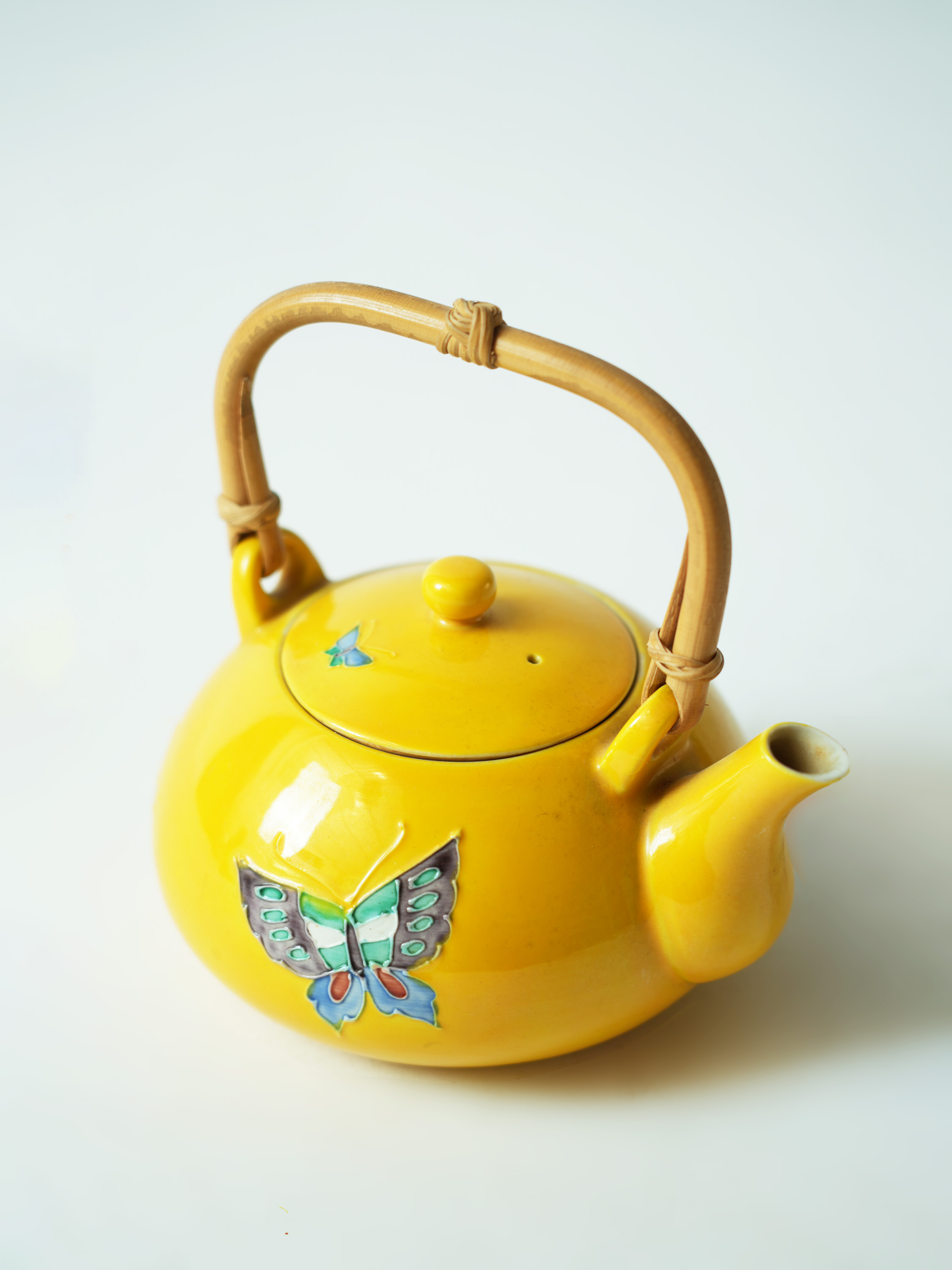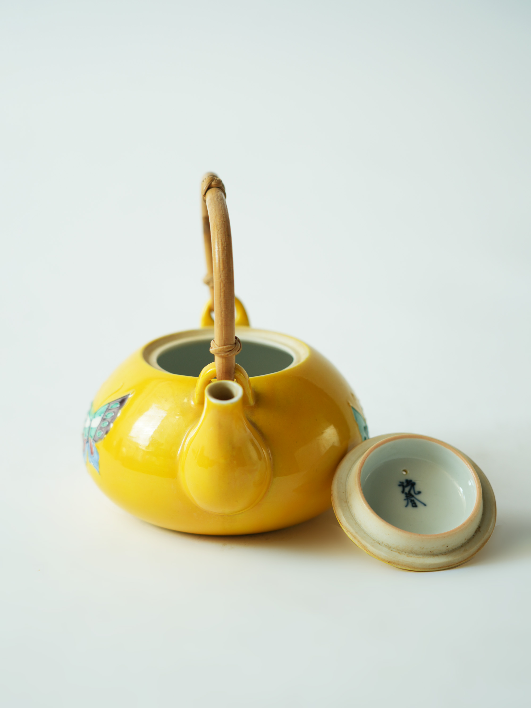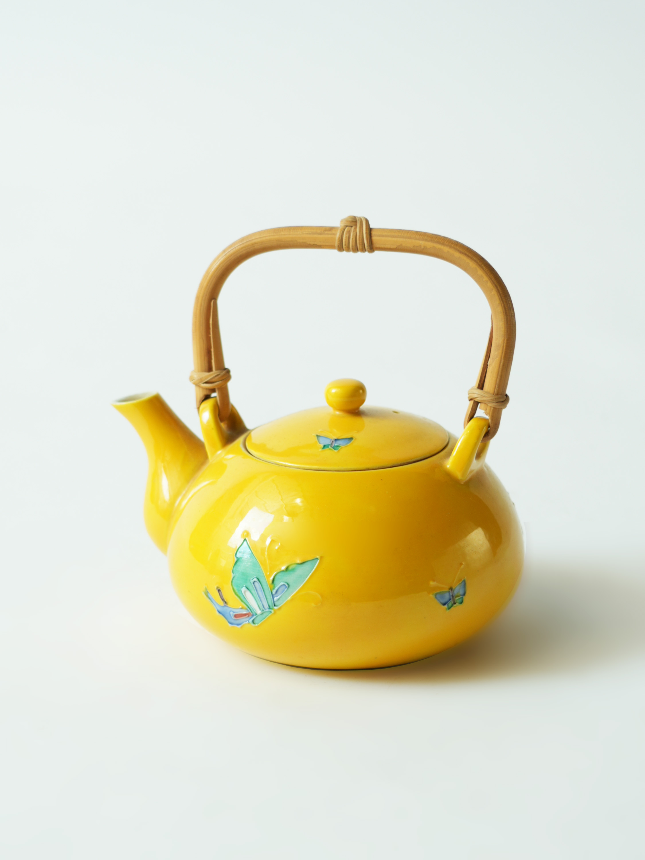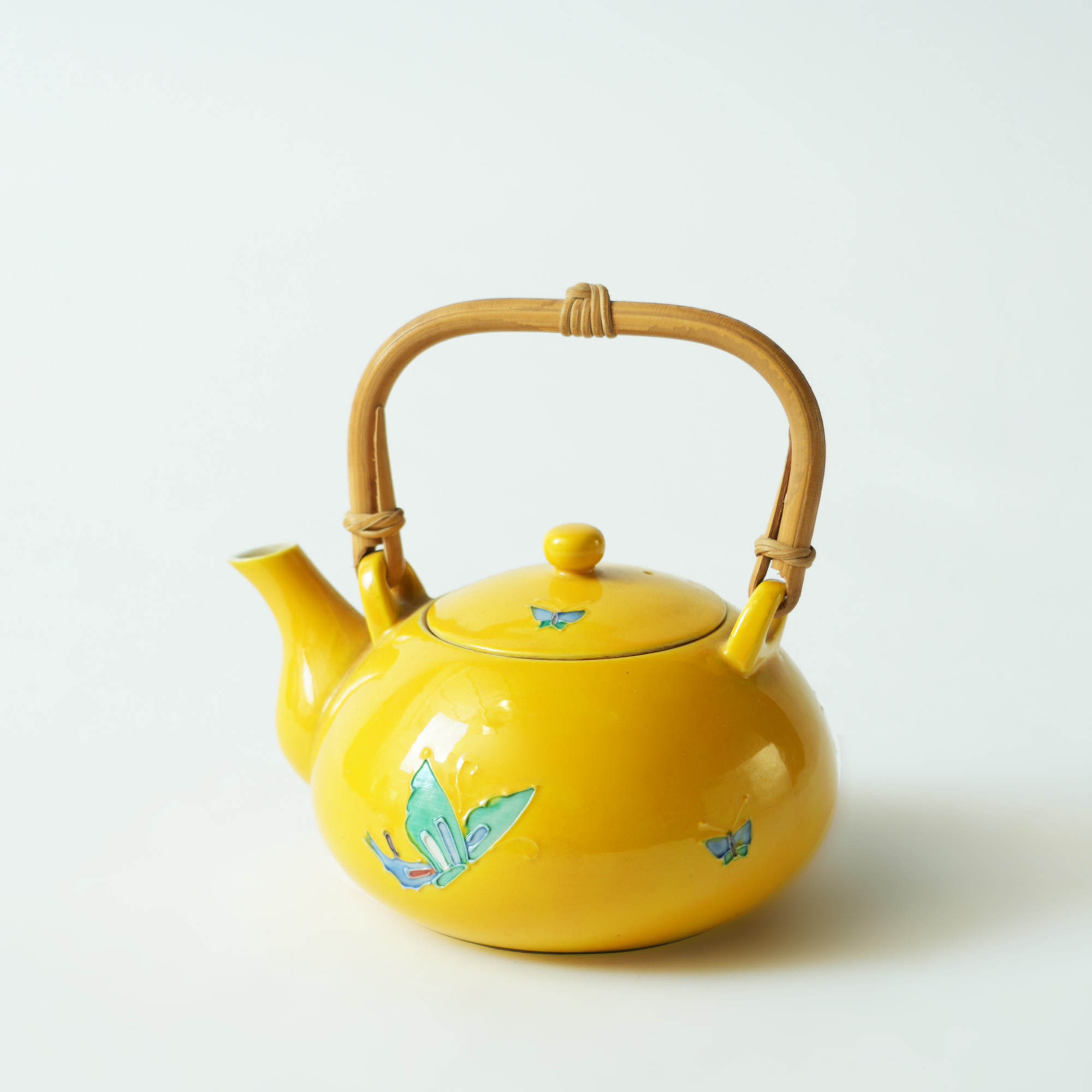 平安洸春蝴蝶纹提梁瓷器壶14*11.7*13.2cm