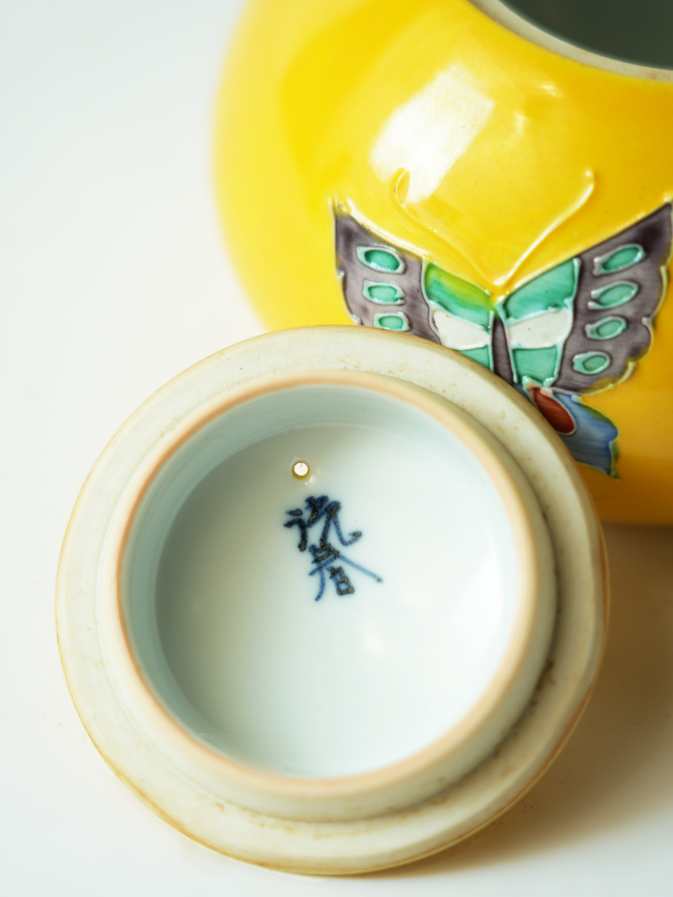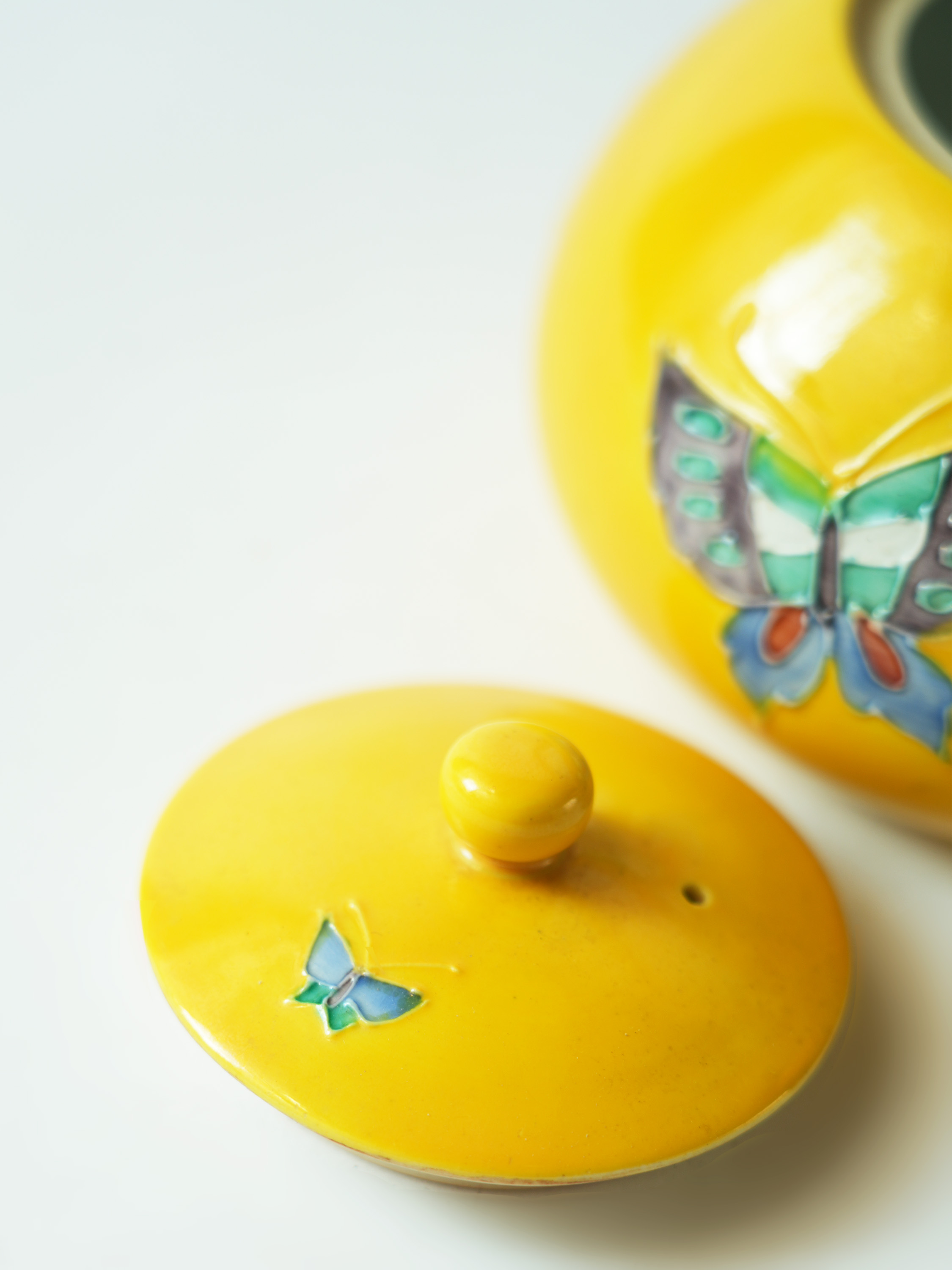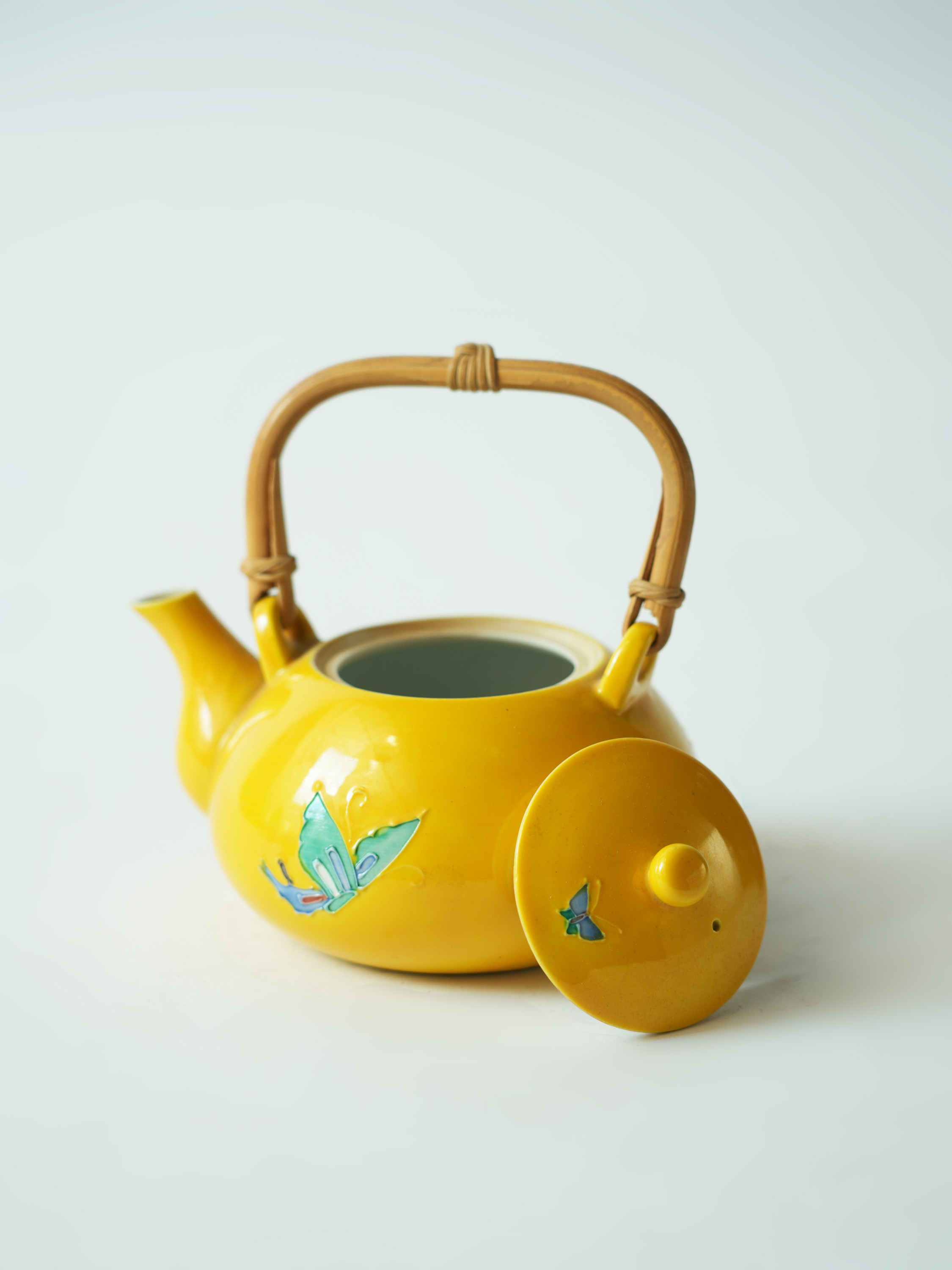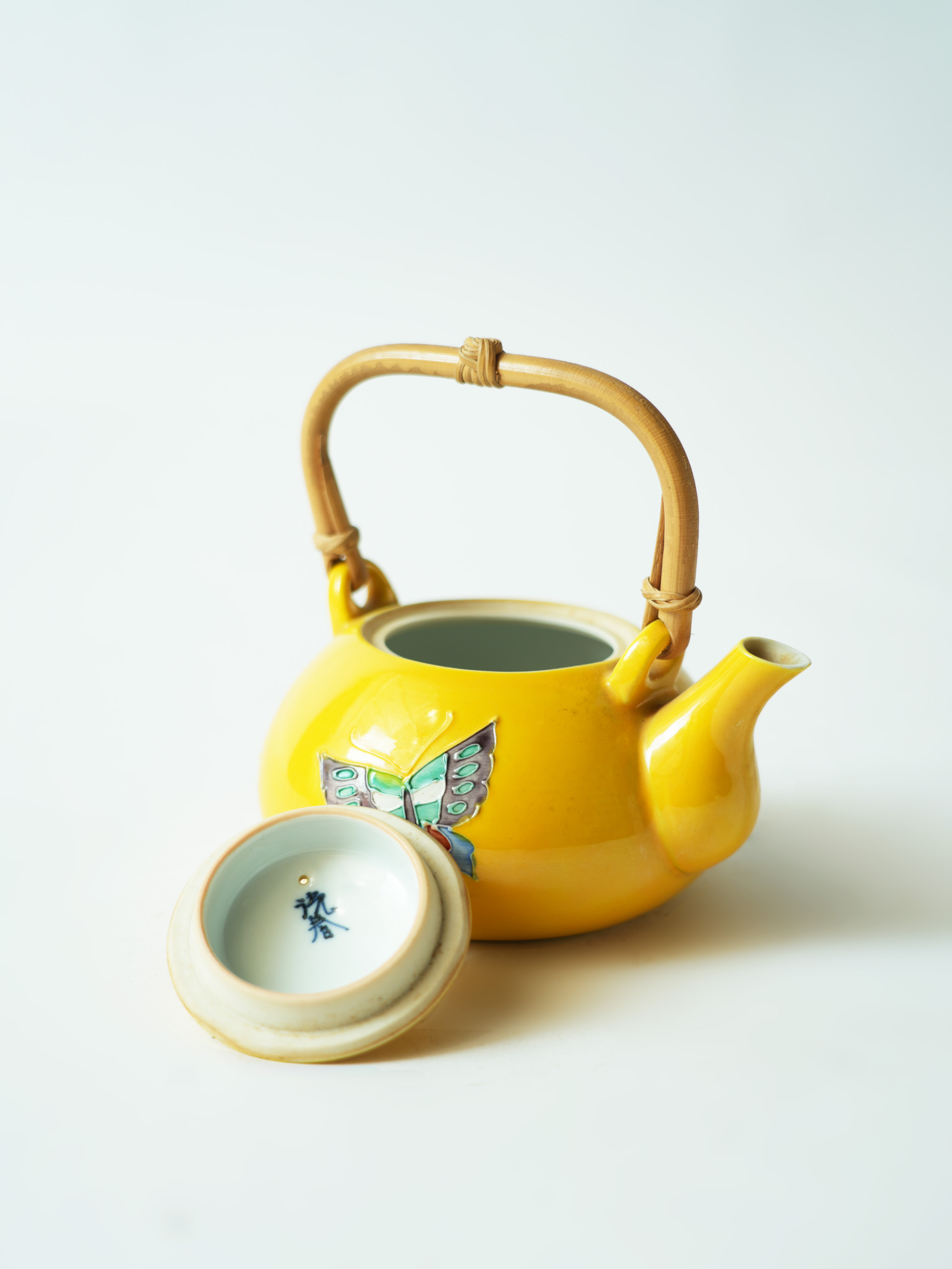 平安洸春蝴蝶纹提梁瓷器壶14*11.7*13.2cm